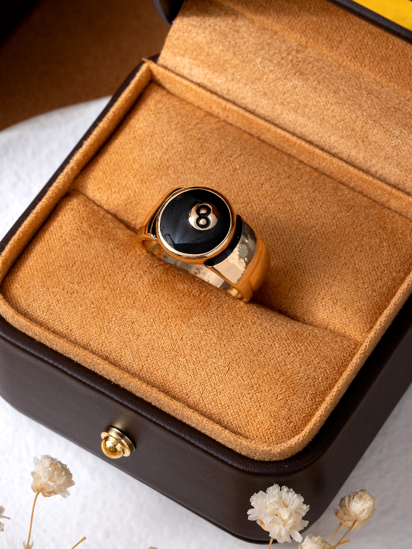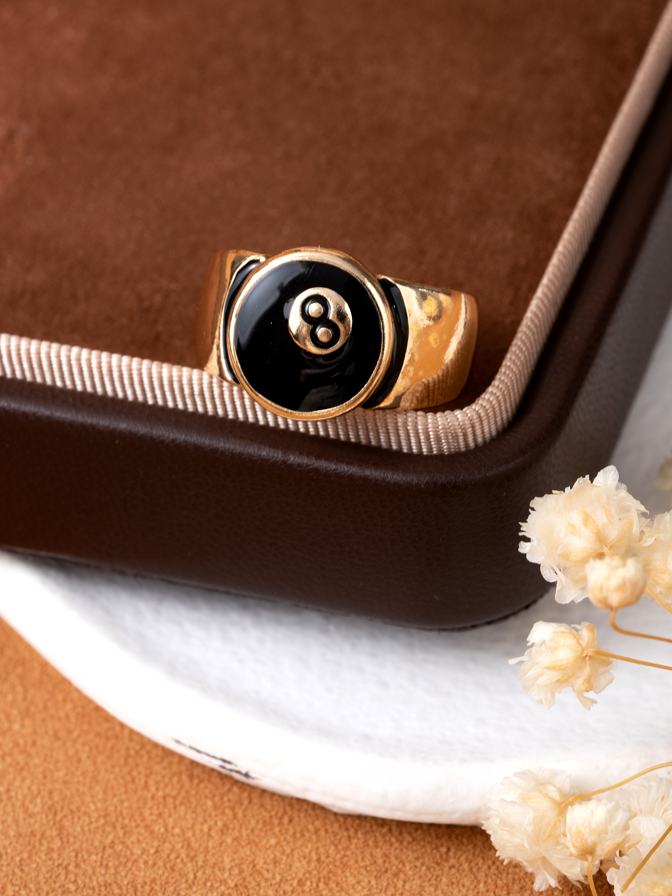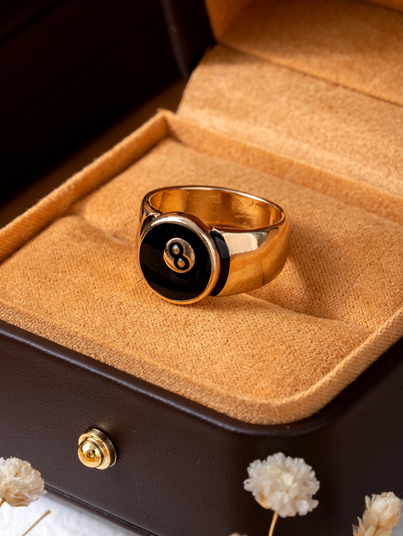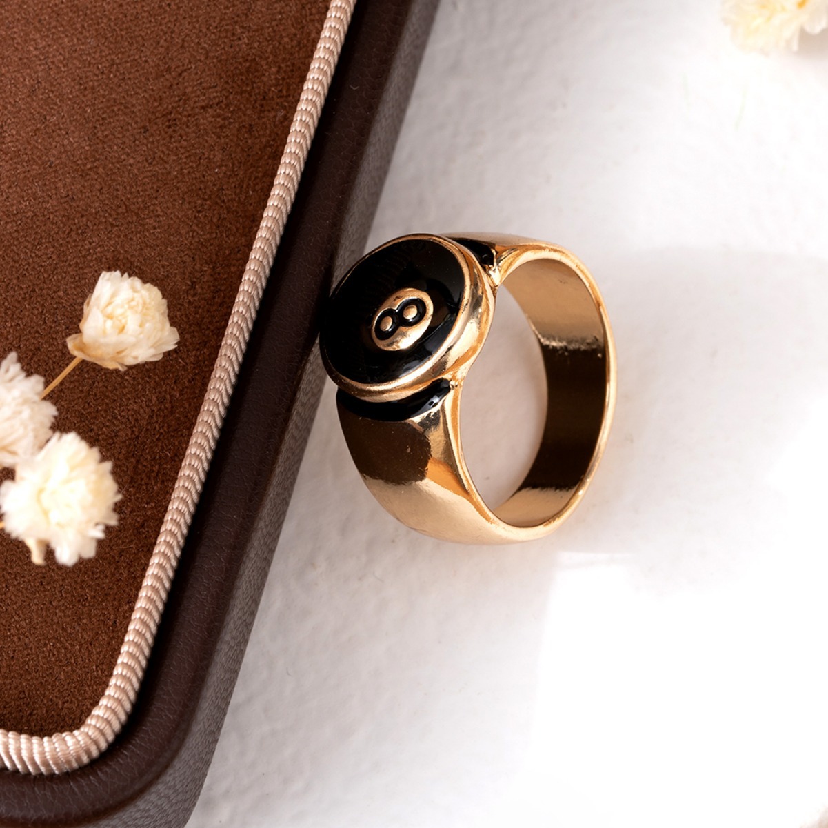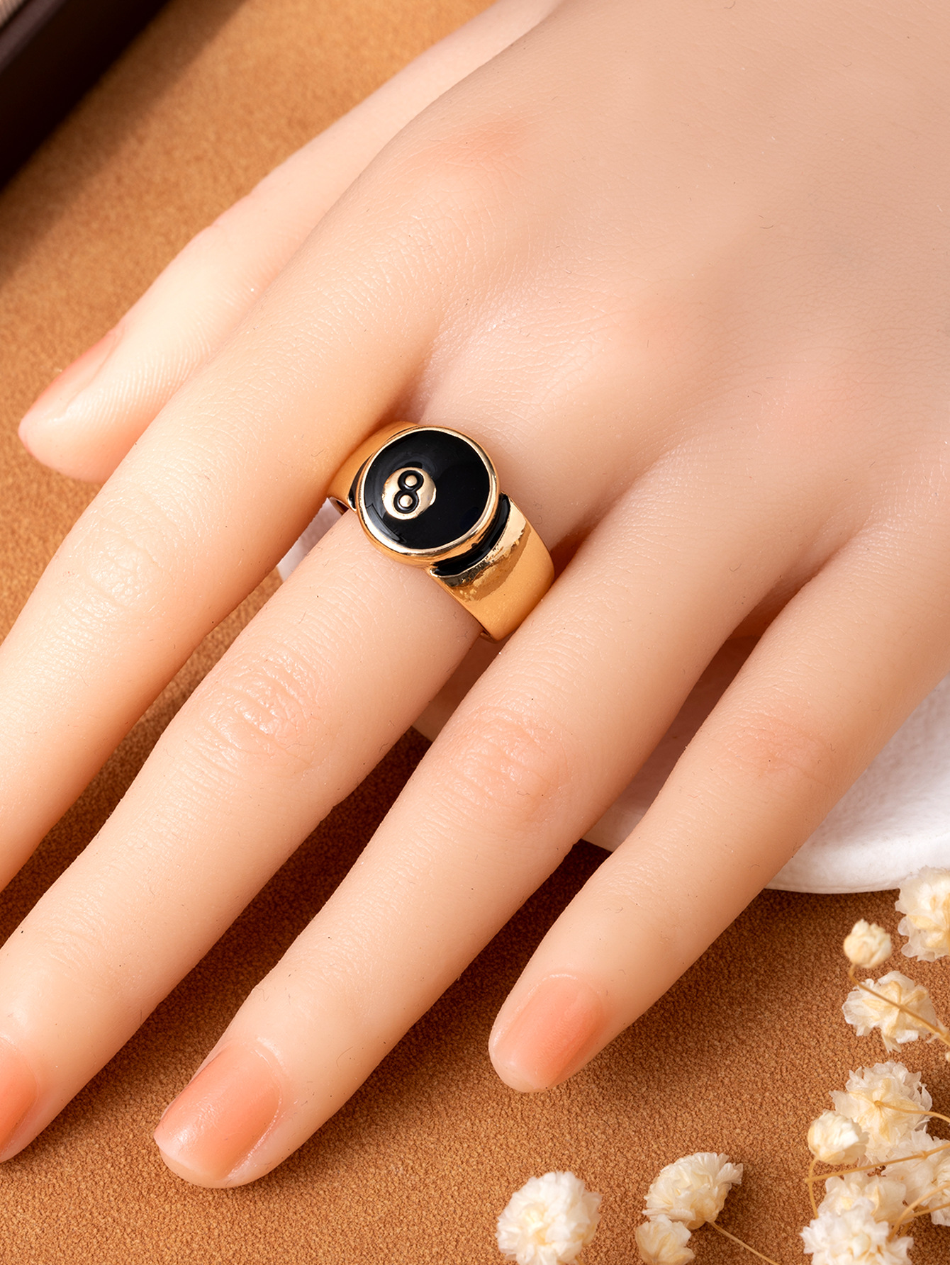 European and American Cross-Border Retro Old-Fashioned Burnt Silver Billiards Black 8 Hip-Hop Trendy Men and Women Can Make Couple Rings and Rings