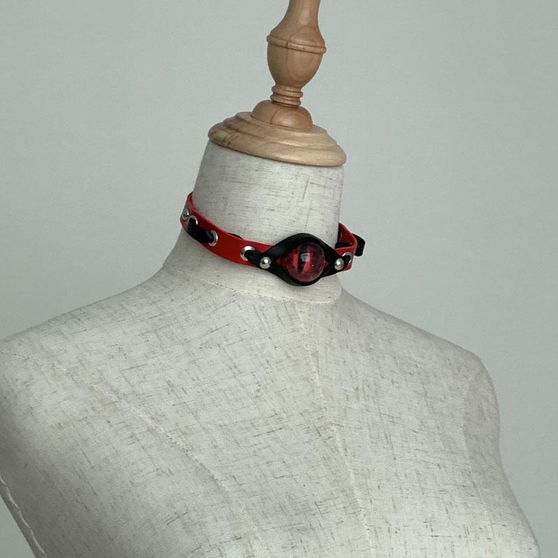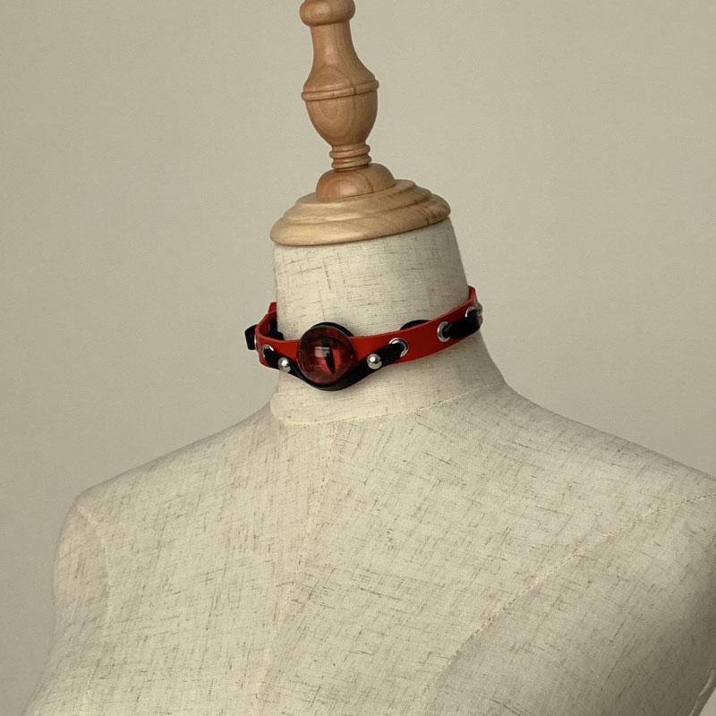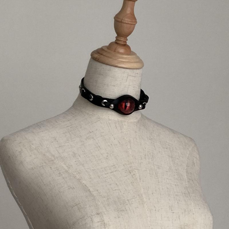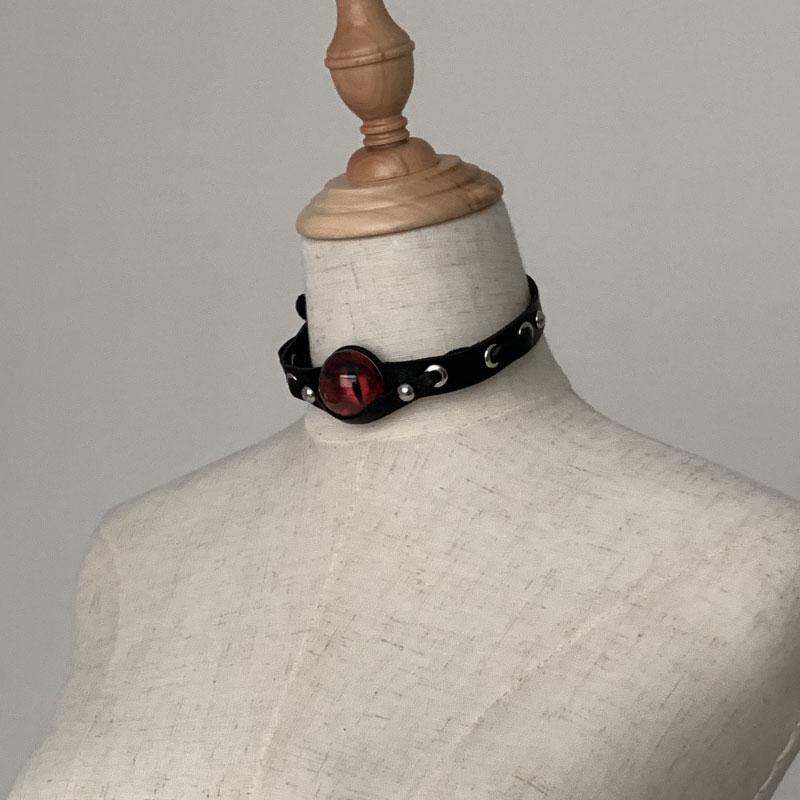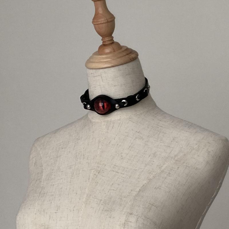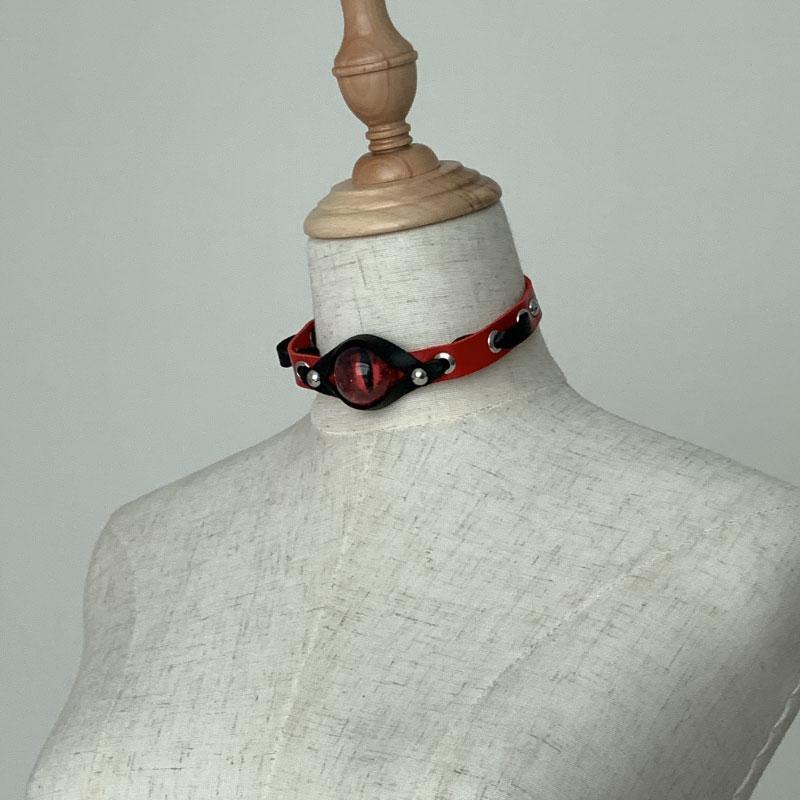Blamed Jewelry Handmade Original Devil Red Eye Collar Red Leather Subculture Niche Design