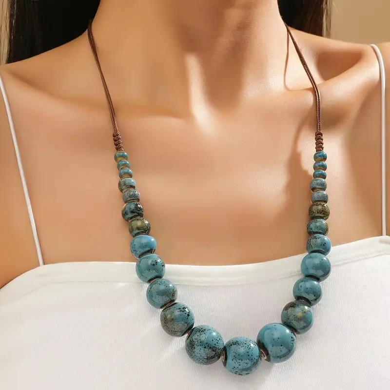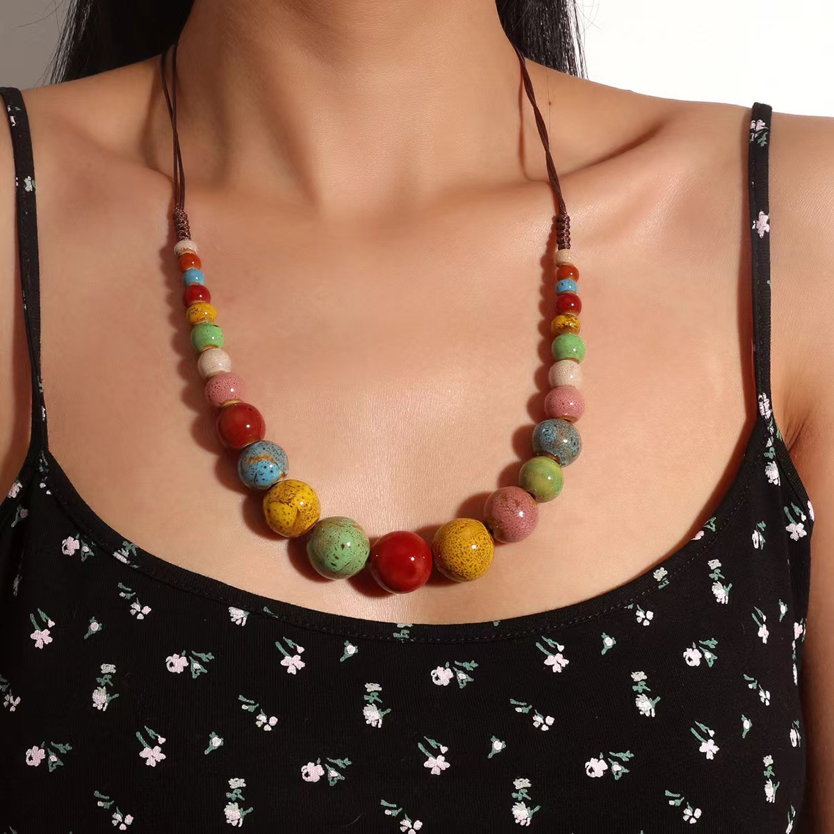 Vintage national style ceramic necklace Joker sweater chain Bohemian necklace women's clothing accessories decorations wholesale