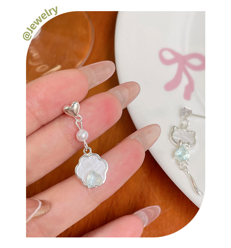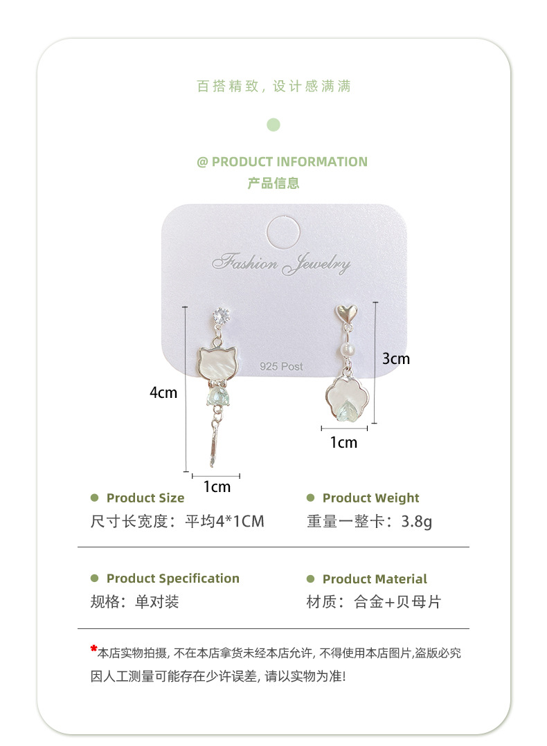Simple Zircon Cat Earrings Women's Silver Needle Geometry AB Cute Exquisite Tassel Earrings Sweet Niche Earrings
