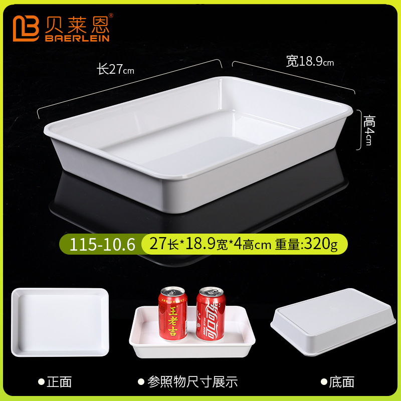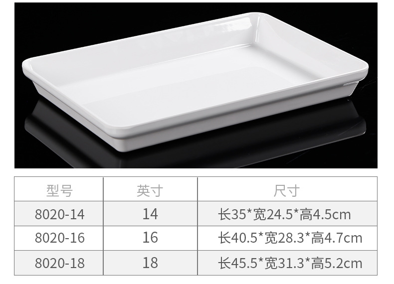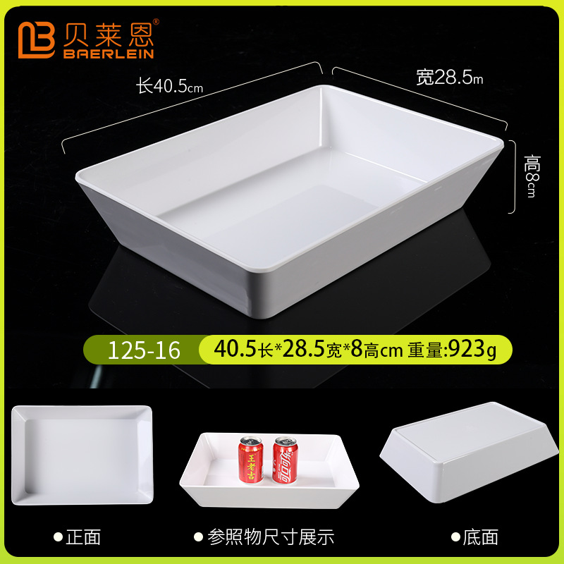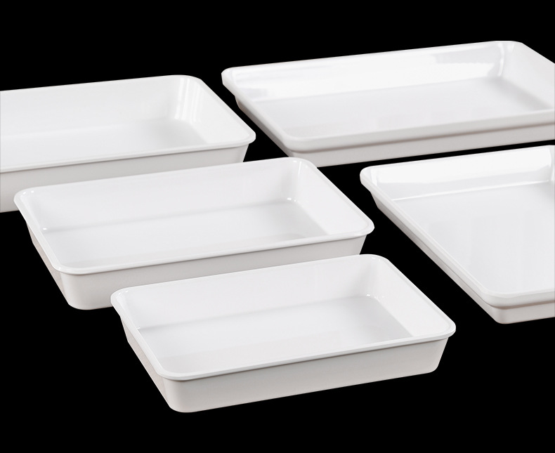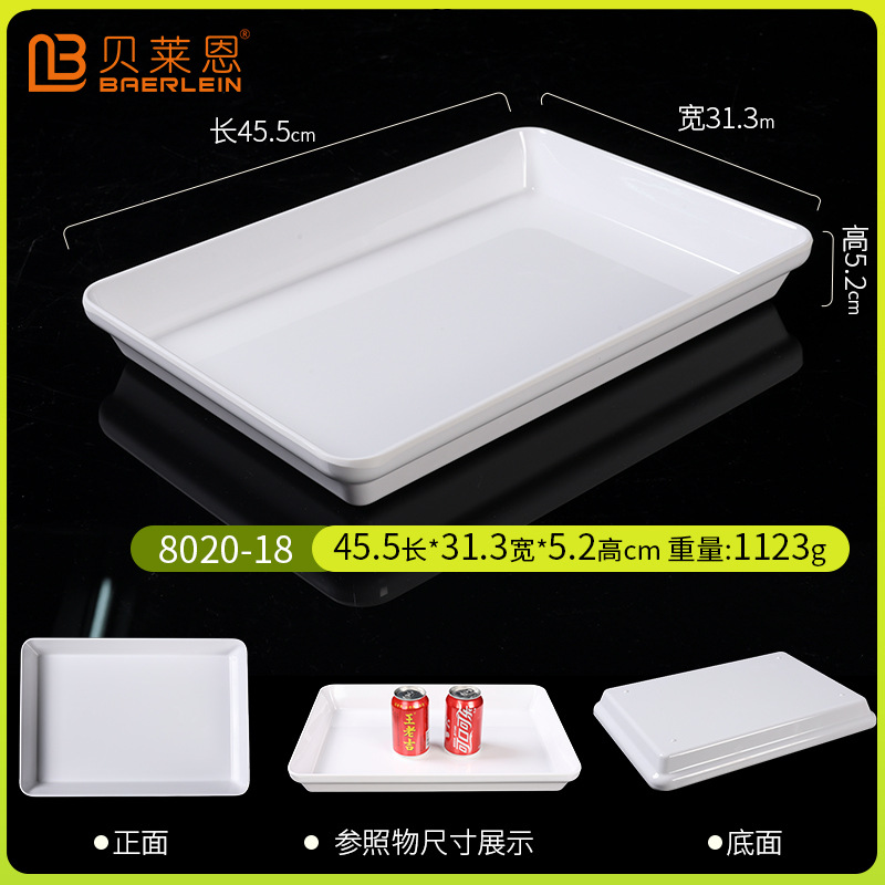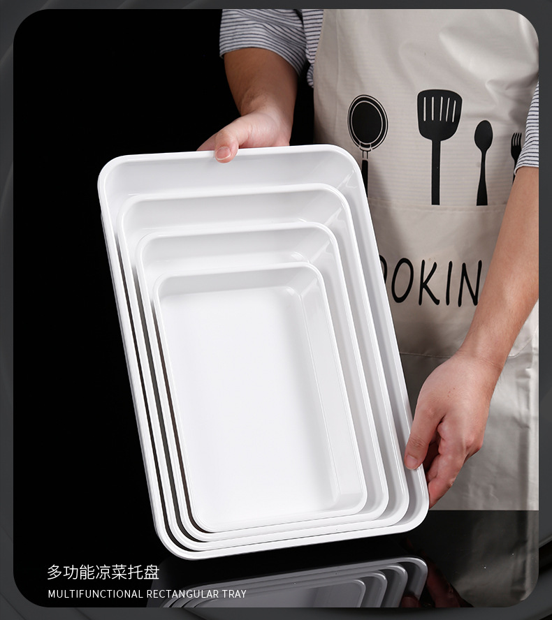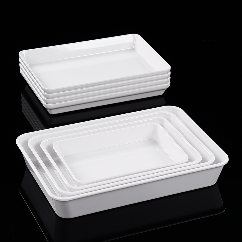 Braised Vegetable Cooked Food Display Plate Melamine Tray Rectangular White Plastic Cold Dish Plate Commercial Melamine Tableware Preparation Plate
