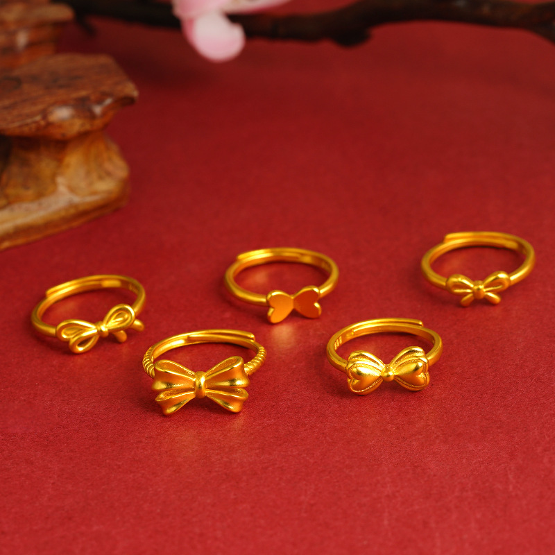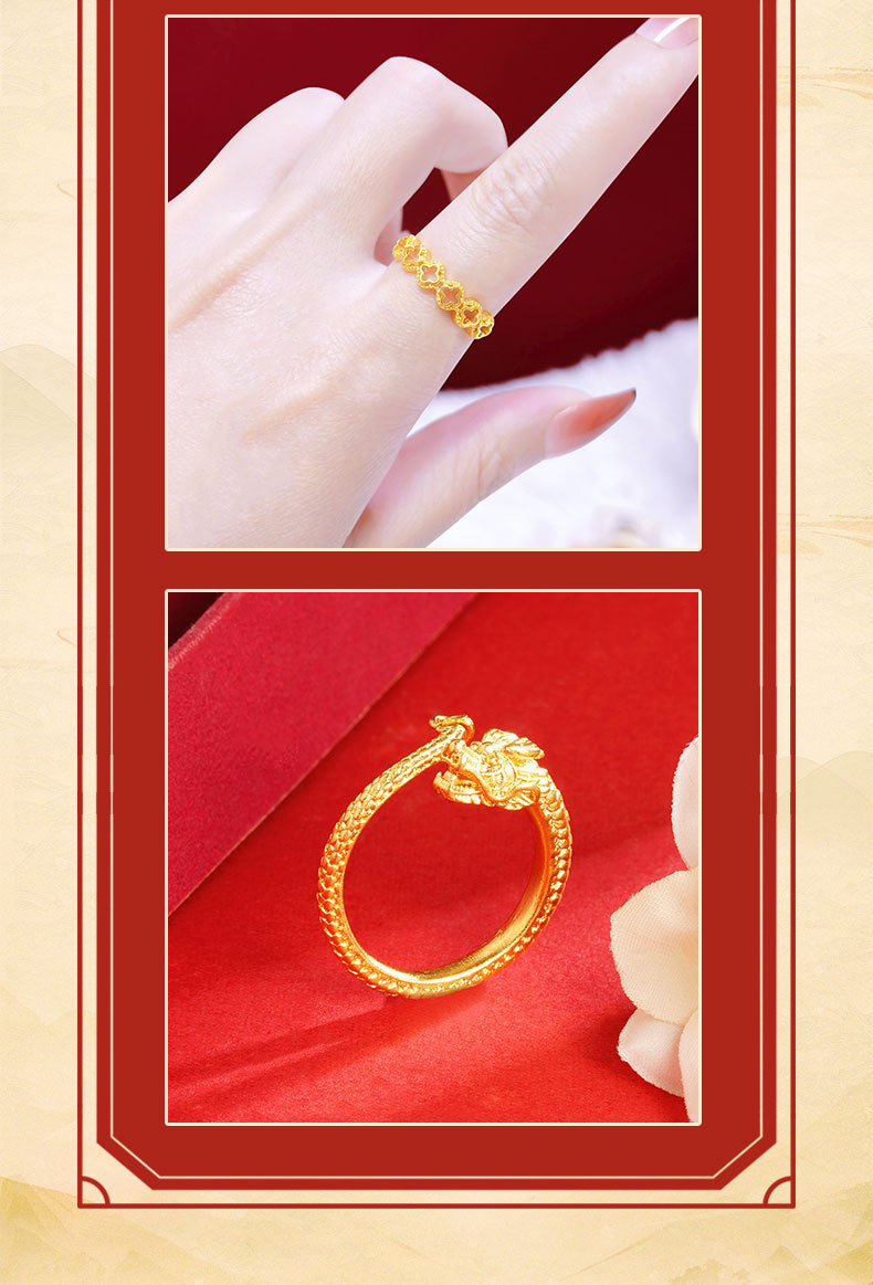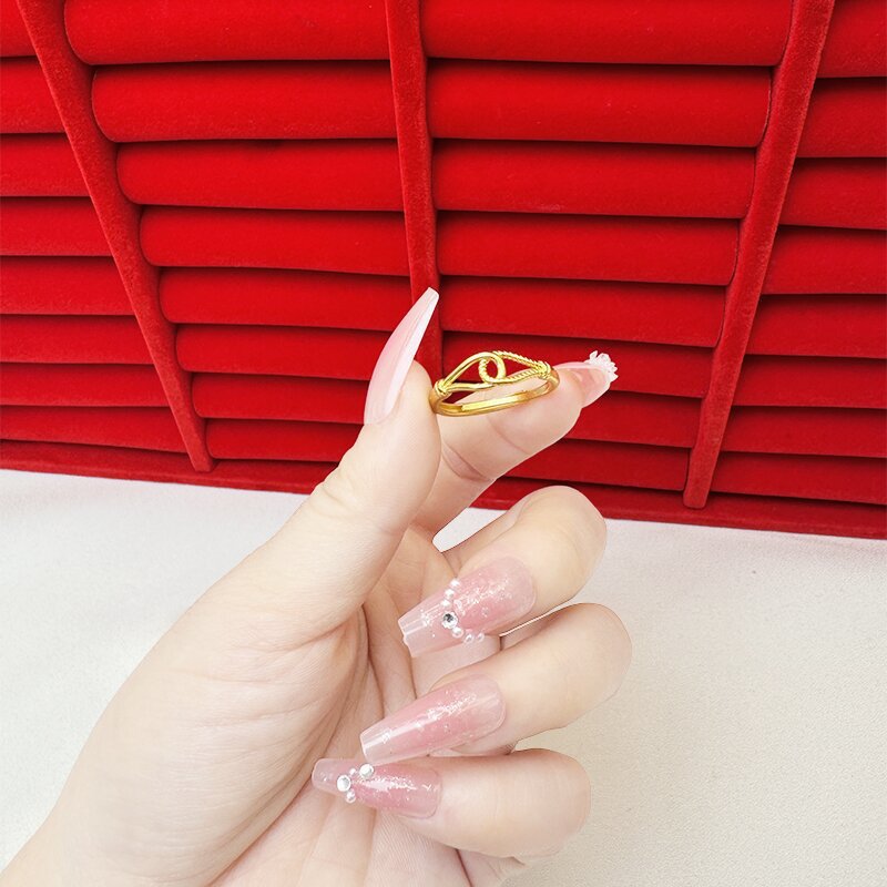 National Trend Chinese Knot Opening Retro Imitation Gold Ornaments Niche High-end Accessible Luxury Design Long-lasting Sand Gold Ring for Women