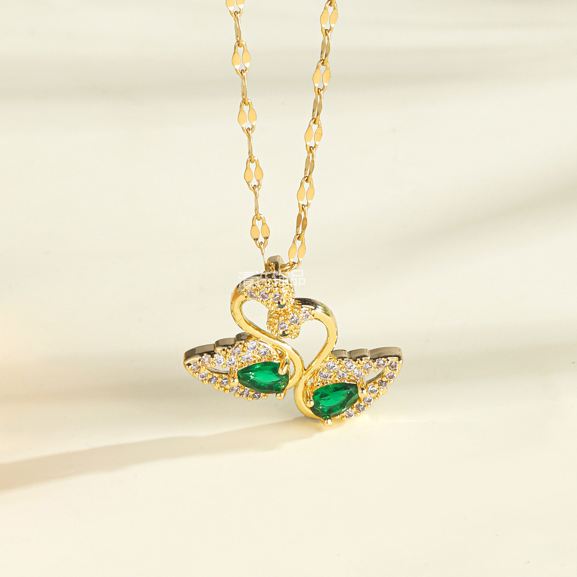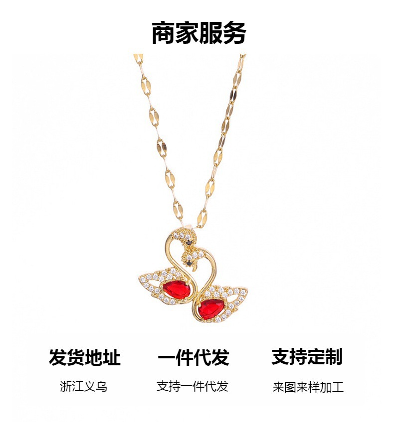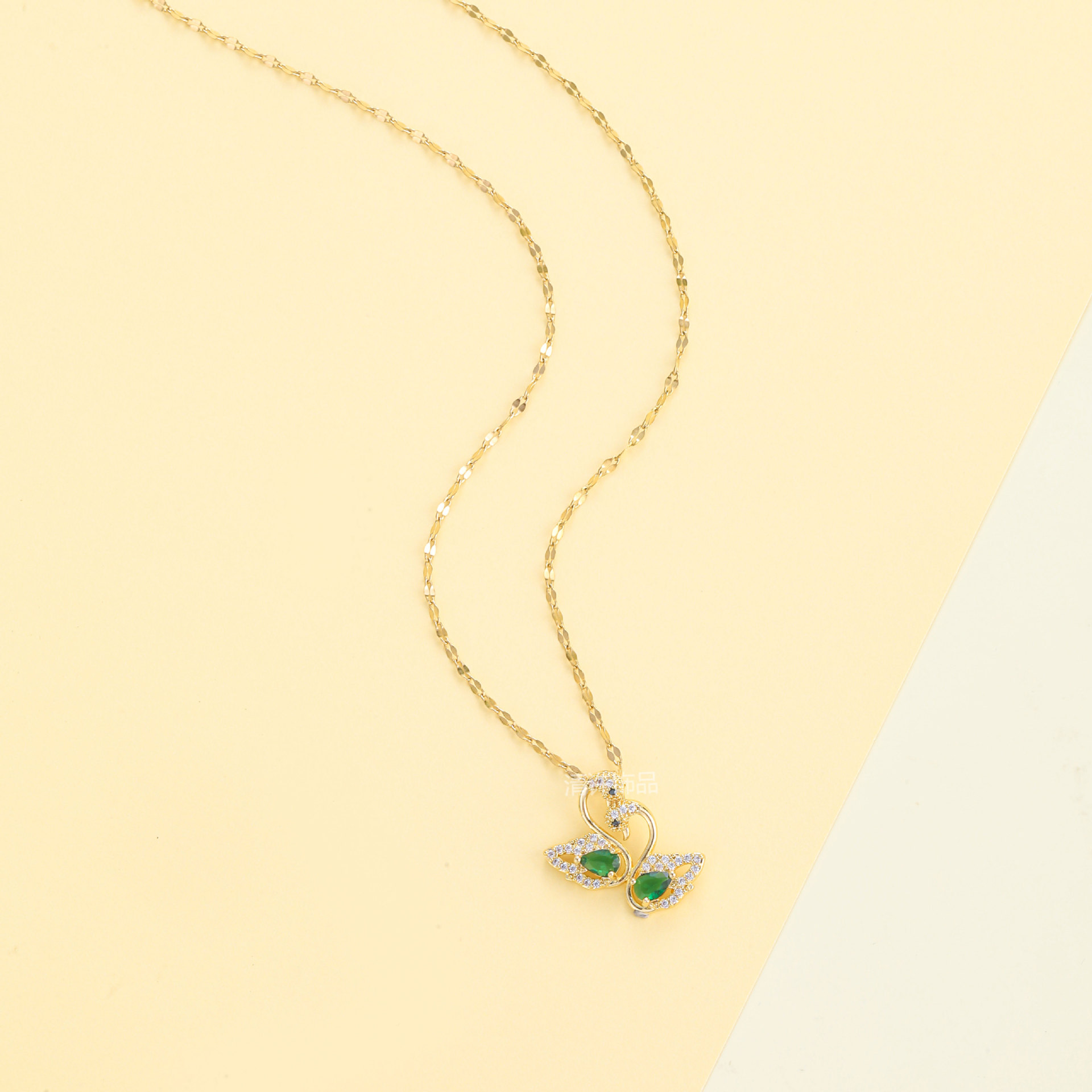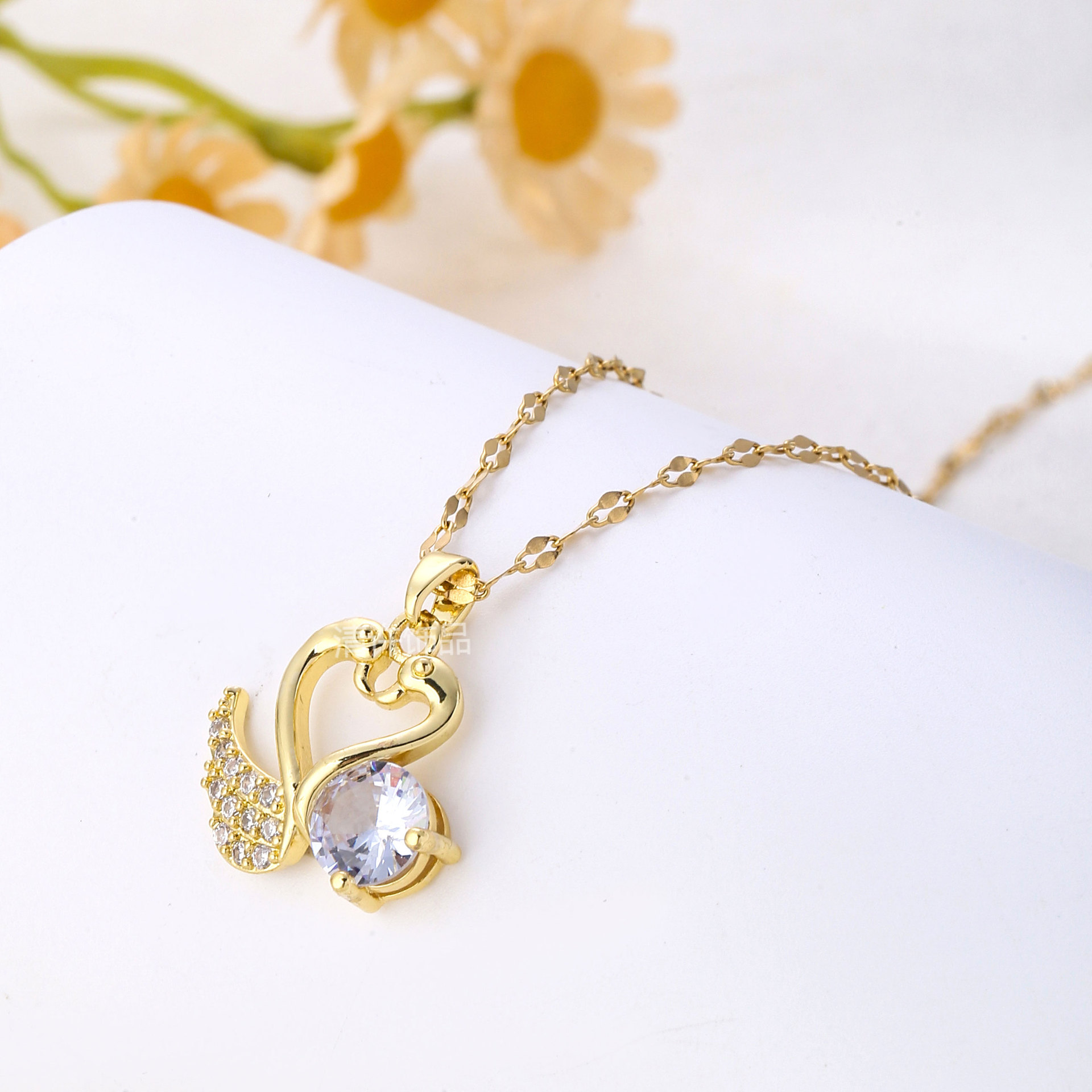 Cross-Border Jewelry Double Swan Zircon Necklace Summer Women's High-End Fashion Pendant Titanium Steel Clavicle Chain Yiwu Accessories