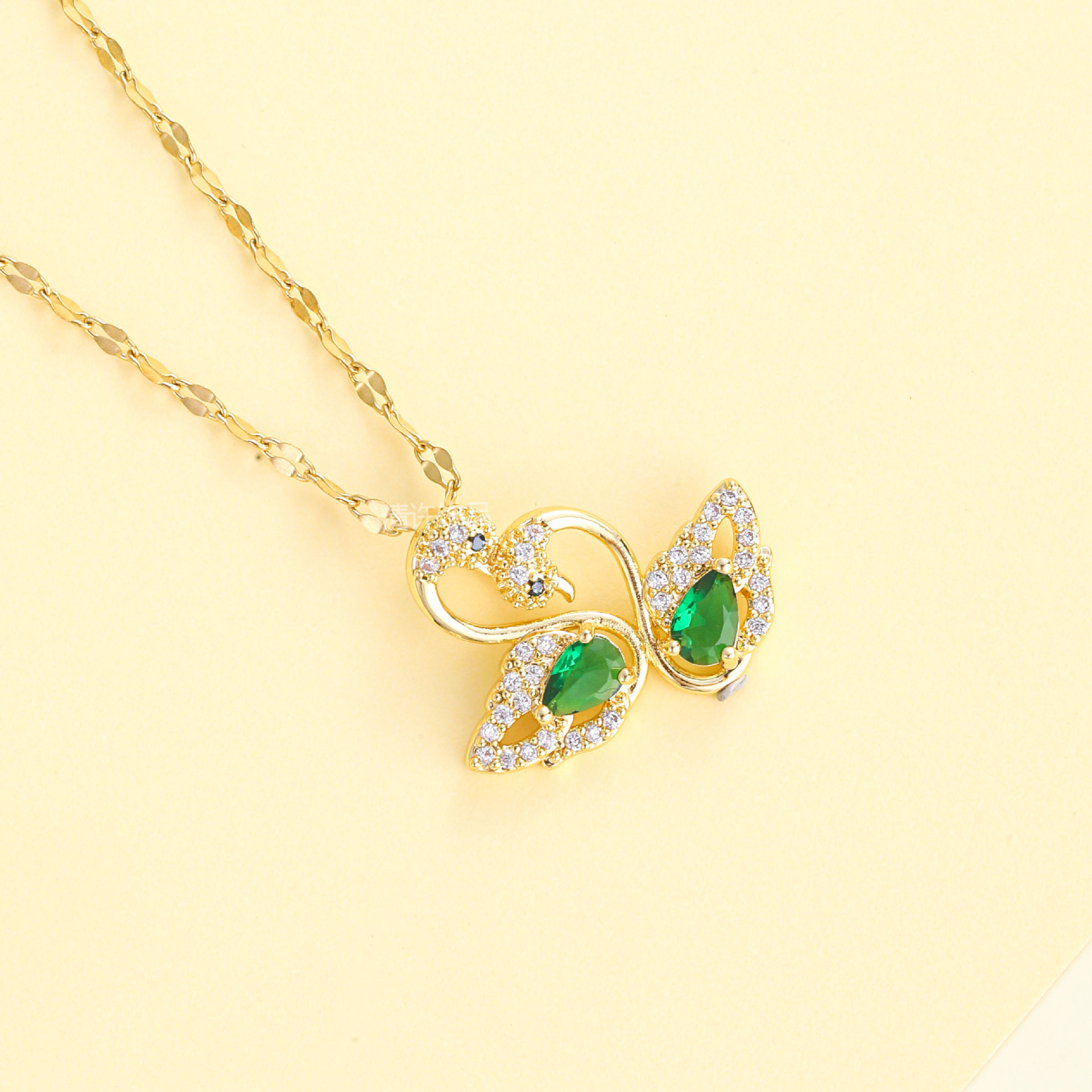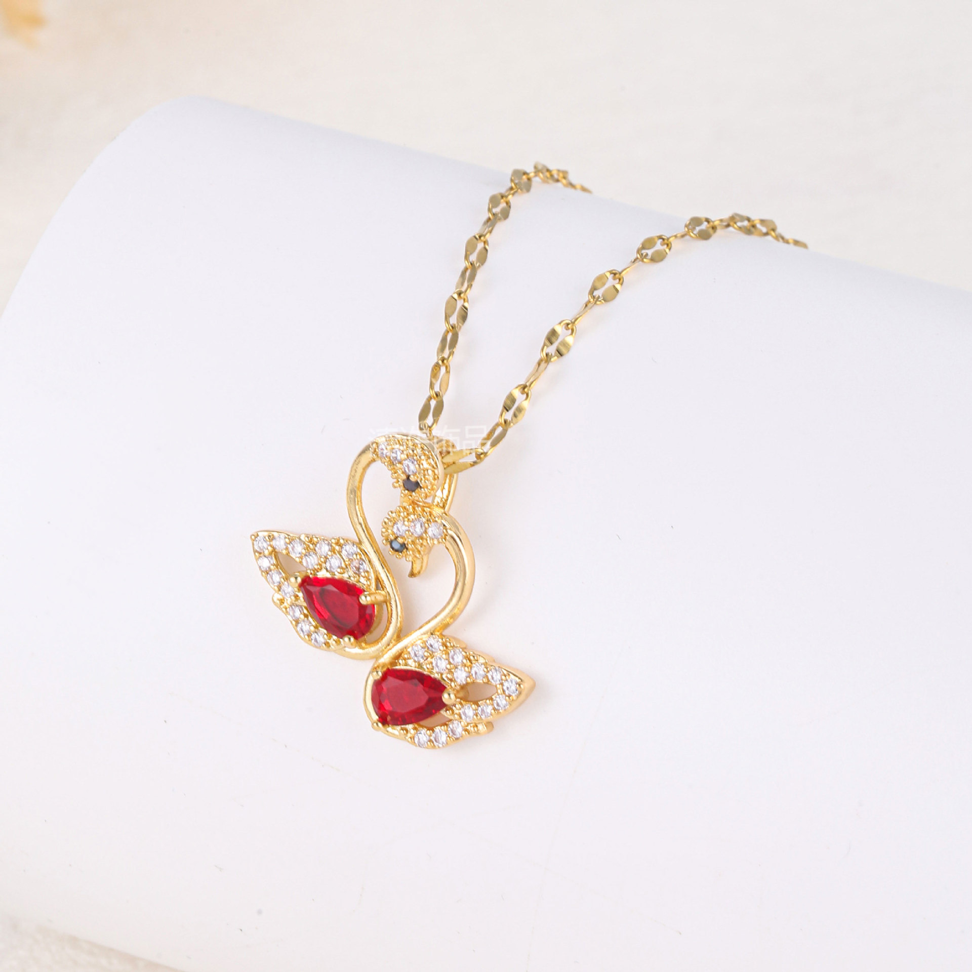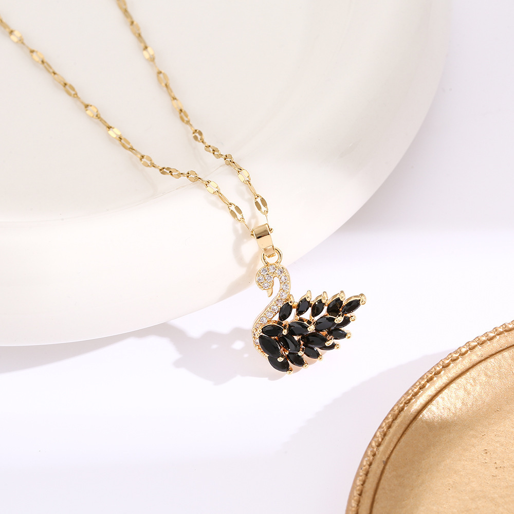 Cross-Border Jewelry Double Swan Zircon Necklace Summer Women's High-End Fashion Pendant Titanium Steel Clavicle Chain Yiwu Accessories