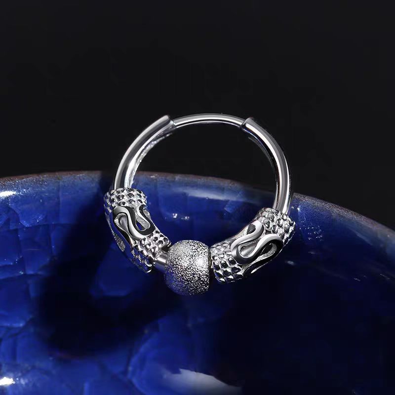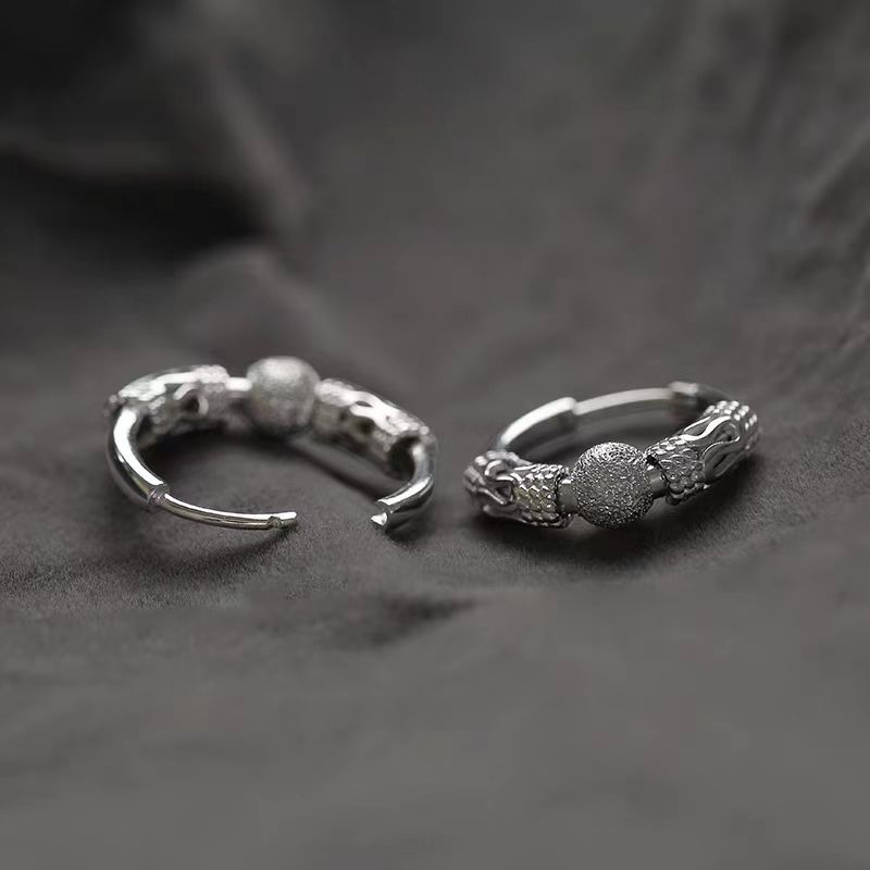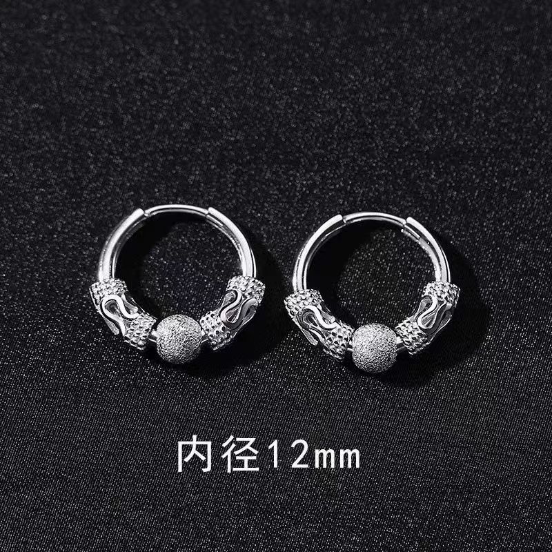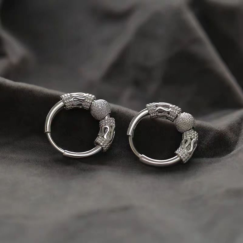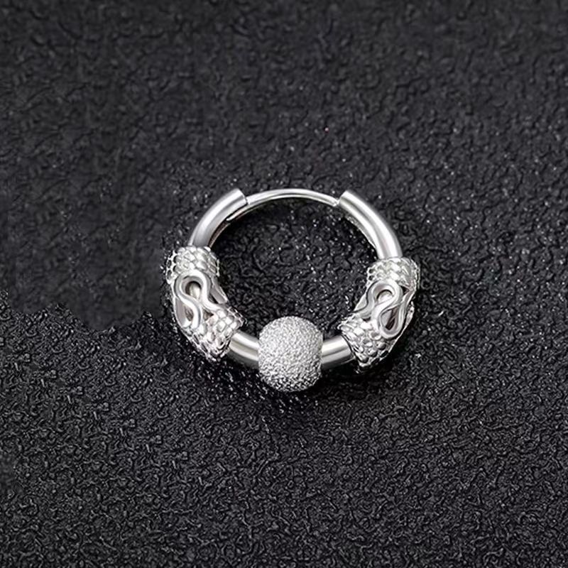High-end Fashion S925 Silver Earrings Trendy Men's Single Simple Ear Stud Trendy Personalized Earrings Vintage Circle Ear Buckle
