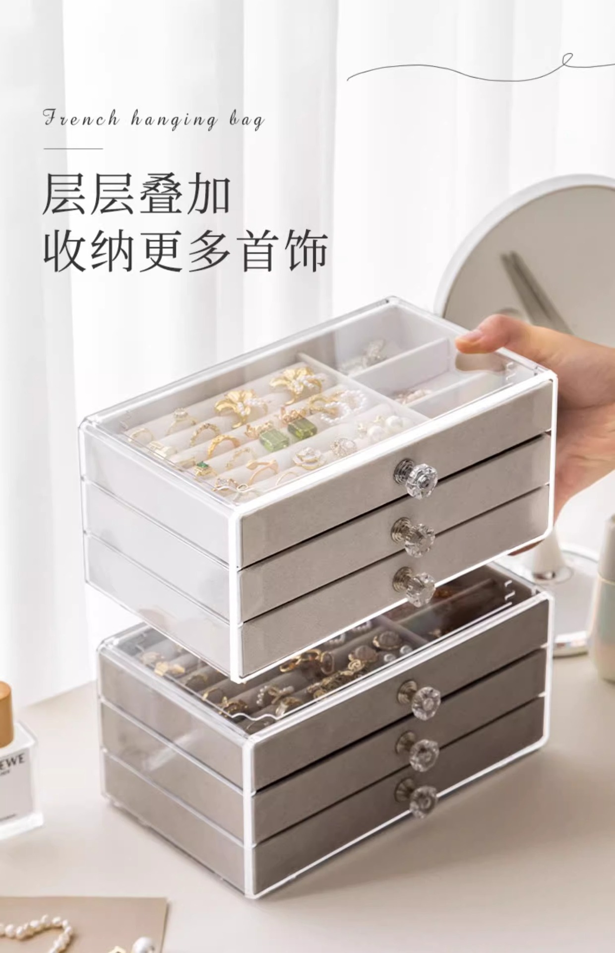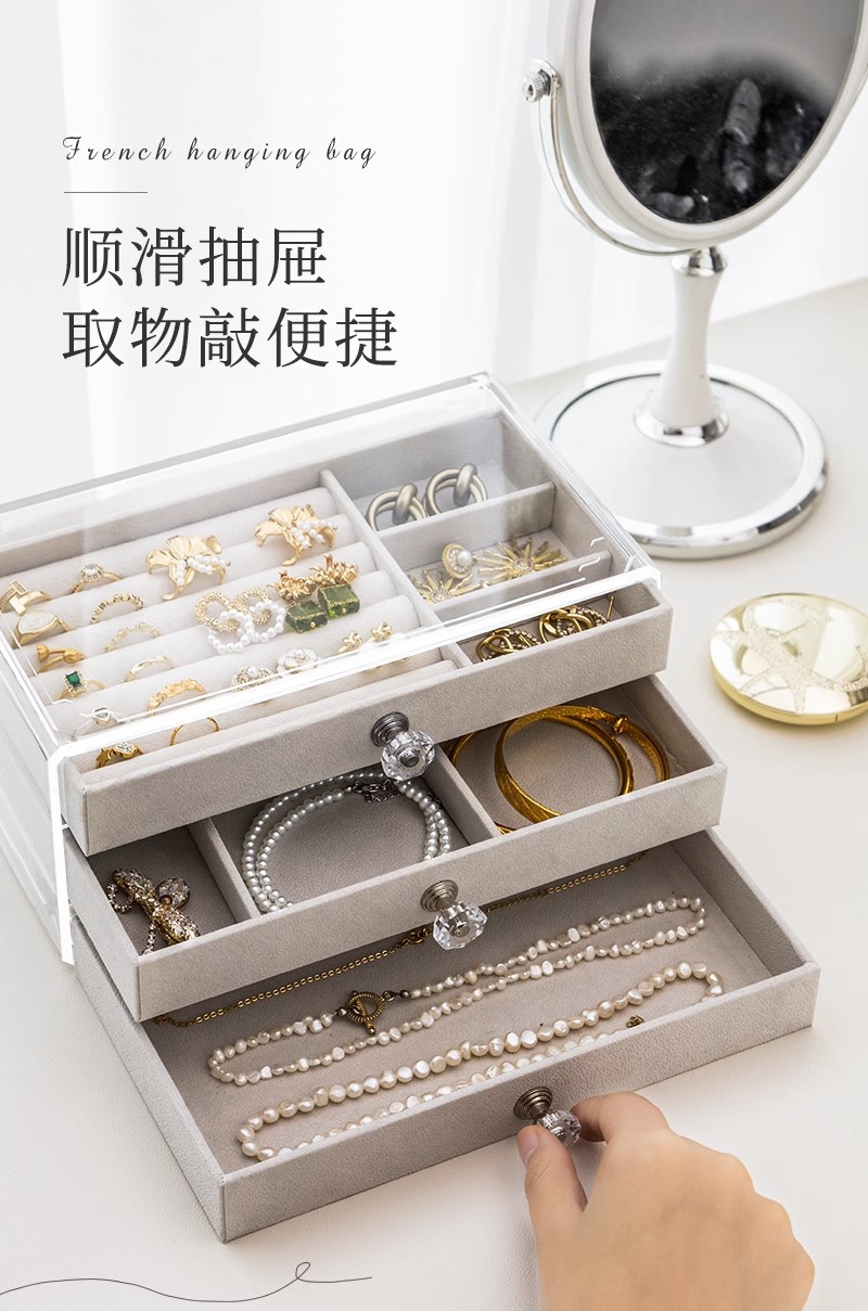 Multi-layer Jewelry Storage Box Drawer-type Large Capacity Anti-oxidation Earrings Ring Necklace Bracelet Jewelry Box