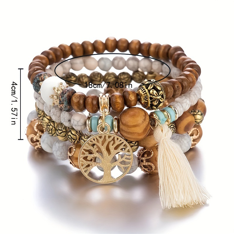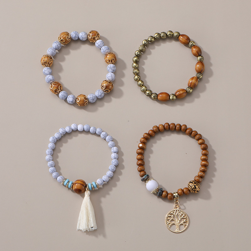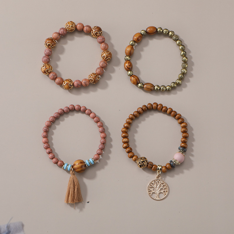 Cross-border manufacturers directly supply Bohemian style multi-layer wooden bead bracelet elastic bracelet European and American jewelry wholesale
