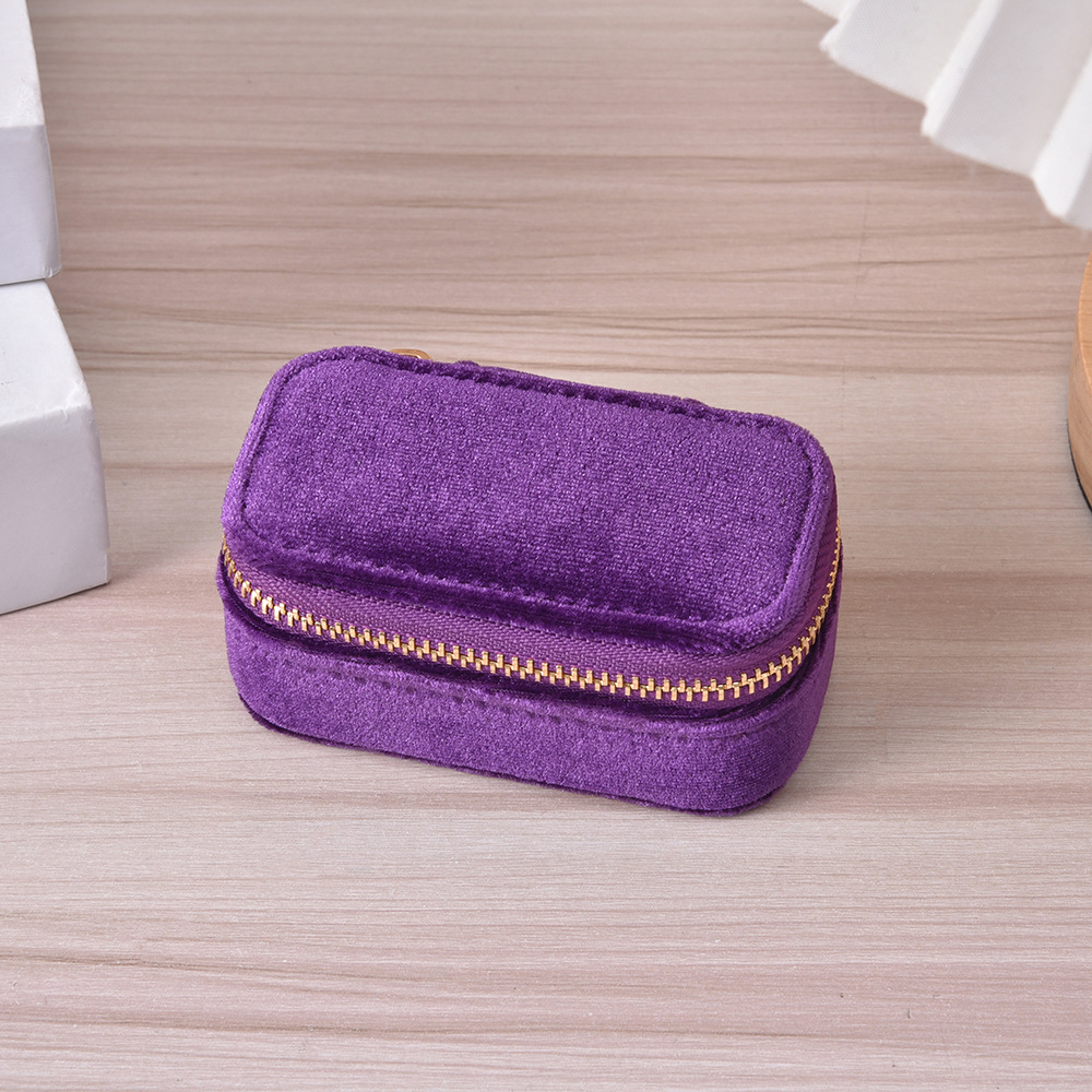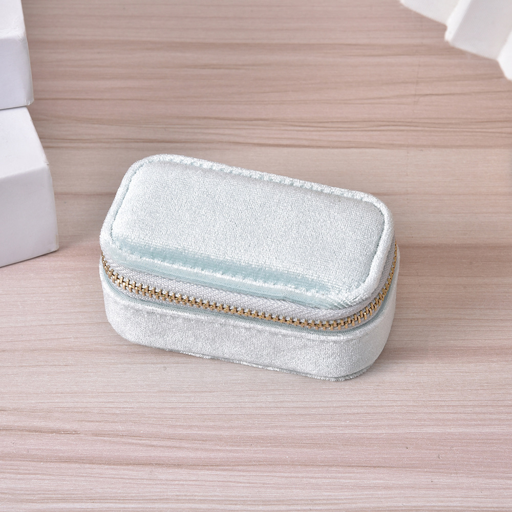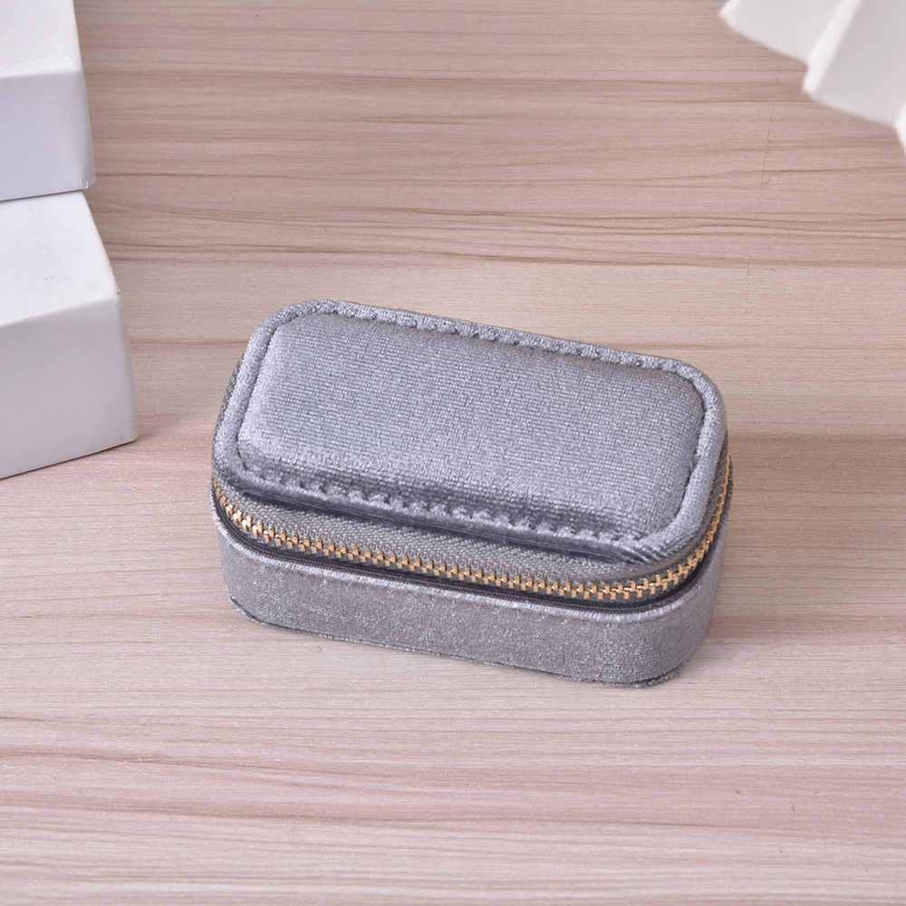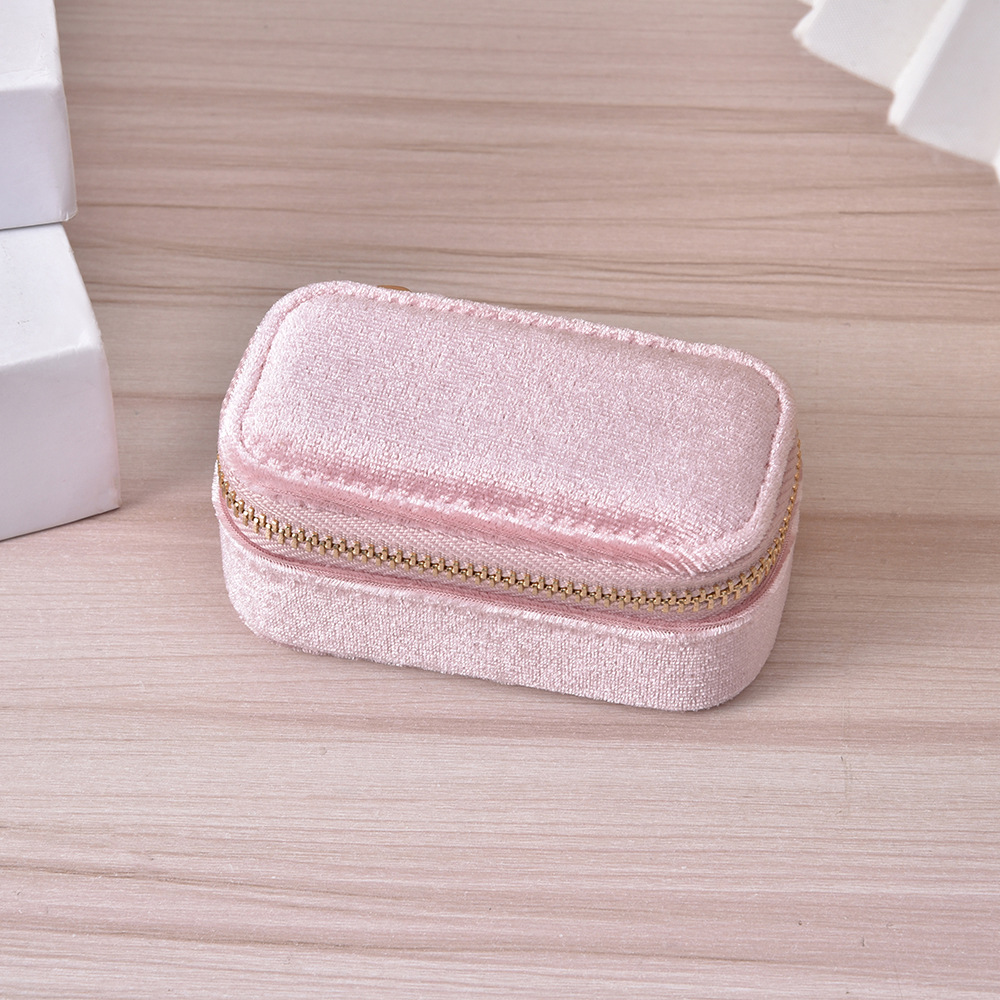 Simple Solid Color Portable Jewelry Box Creative Ring Necklace Storage Box Velvet Zipper Jewelry Box in stock