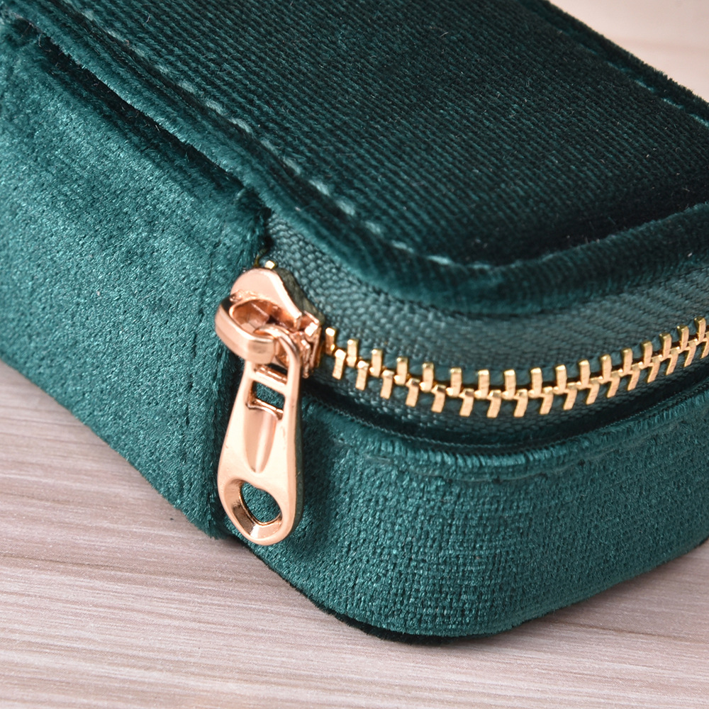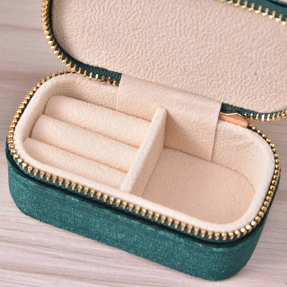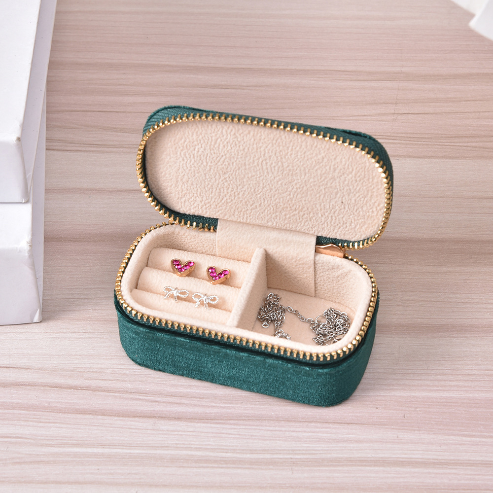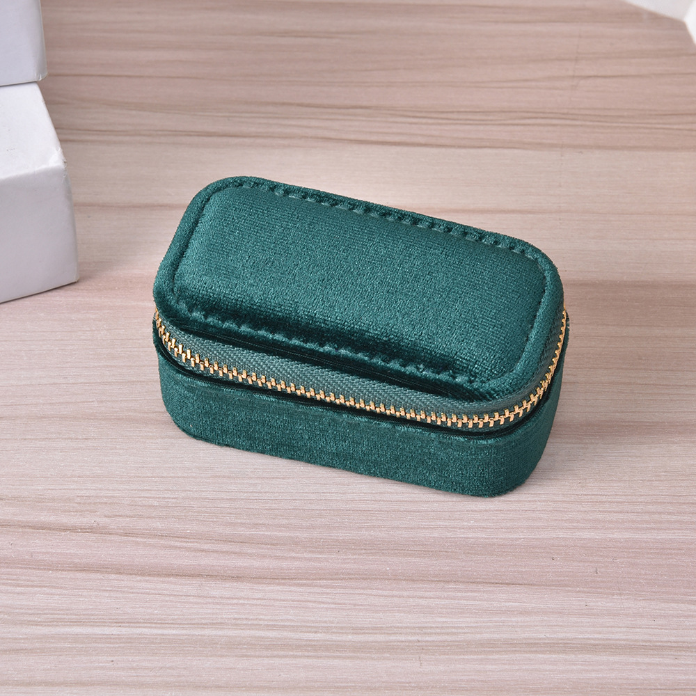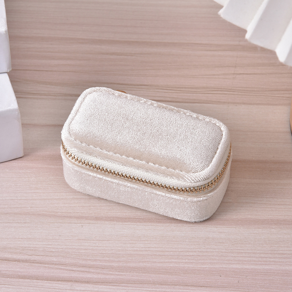 Simple Solid Color Portable Jewelry Box Creative Ring Necklace Storage Box Velvet Zipper Jewelry Box in stock