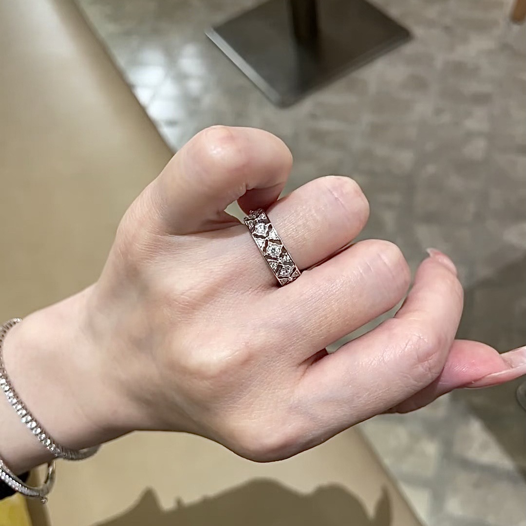 Middle Ancient Court Style New Entry Luxury Niche Retro Flower Pattern Hollow Ring with Diamond Advanced Design Sense Finger Ring