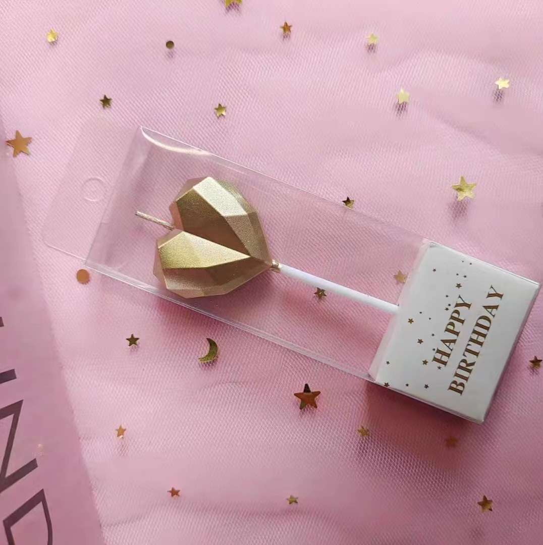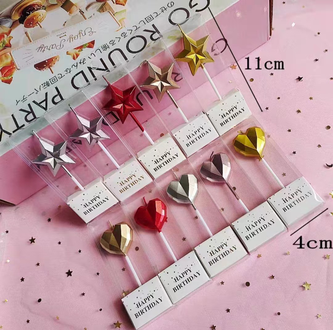 Metallic Diamond Love Heart Star Shaped Candle 3D Stereoscopic Pentagram Wedding Party Birthday Cake Handmade