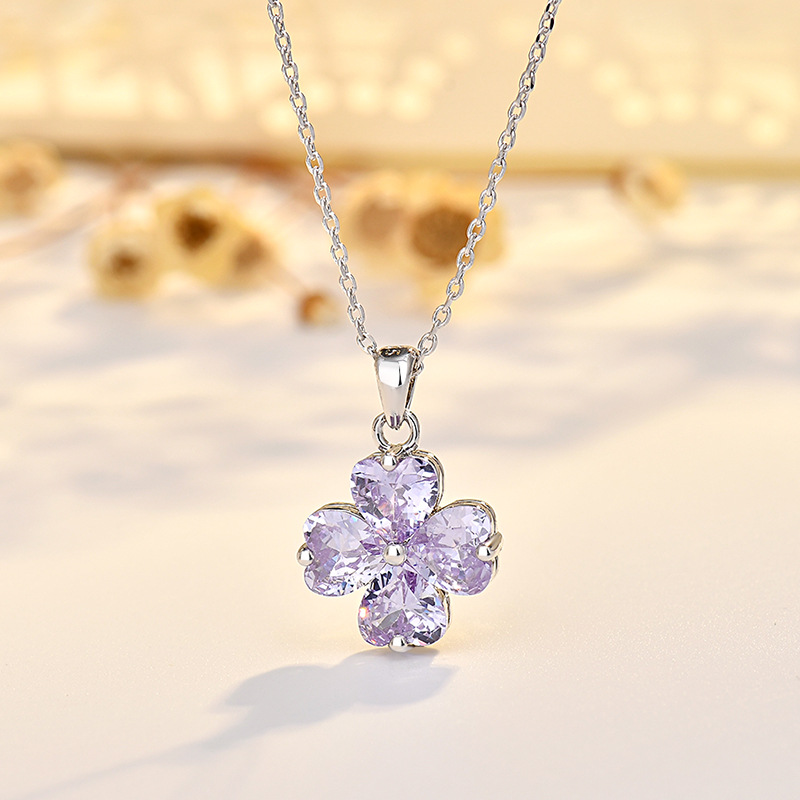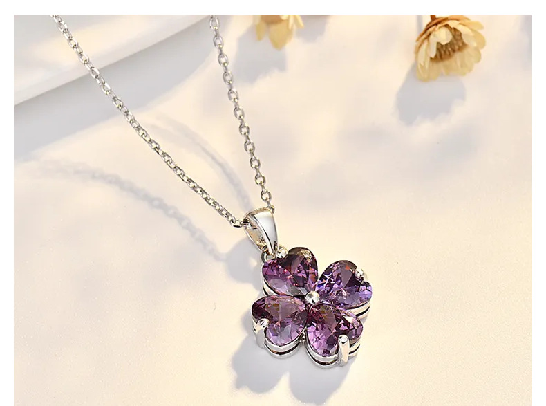 Color: Purple blue february (four-leaf clover pendant) does not include chain