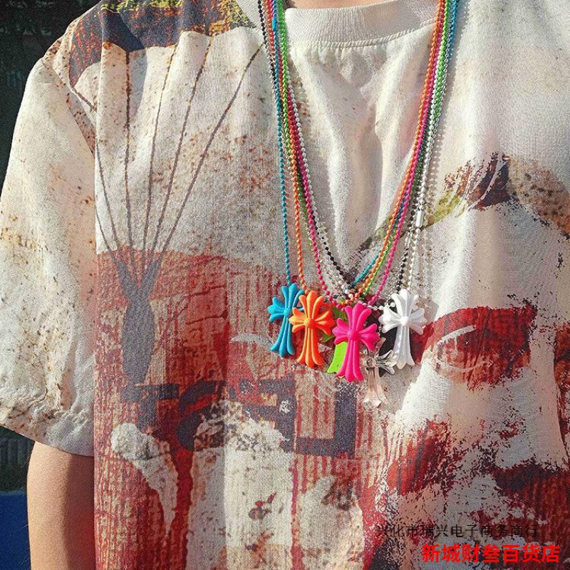 Test Version of Croxin 20th Anniversary ch Cross Colorful Necklace Tokyo Qingshan Retro Limited Resin Versatile Trend
