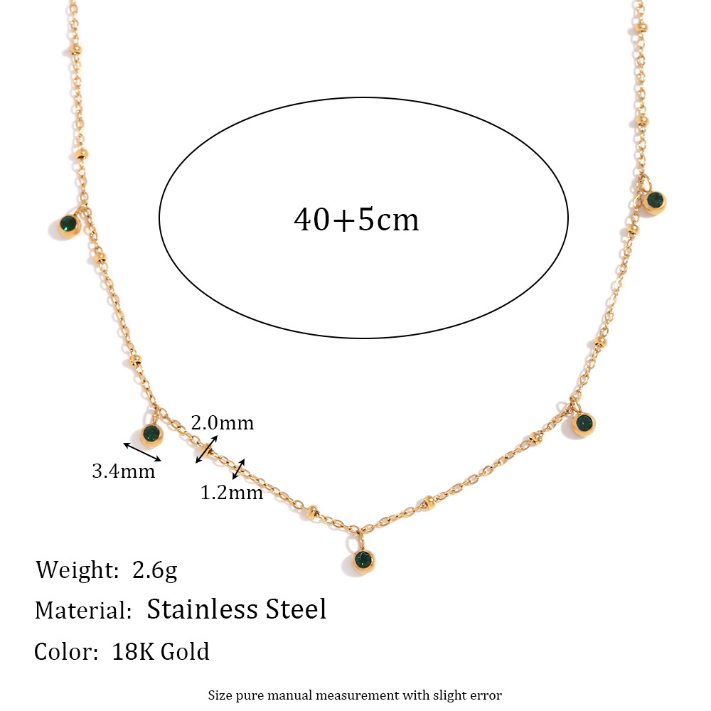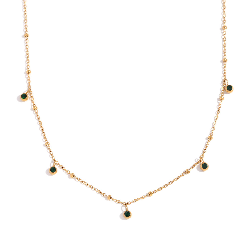 Color: Green Zircon Beaded Necklace-Gold