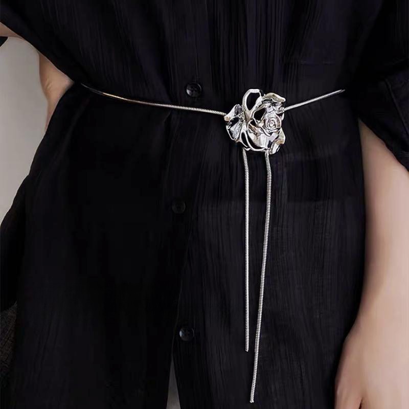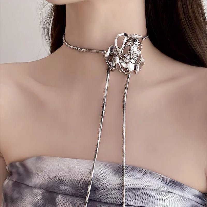 High-grade Rose Necklace Female Niche Design Y2K Sweet Cool Collarbone Chain Spice Girls Fashion Pull-out Waist Chain Female