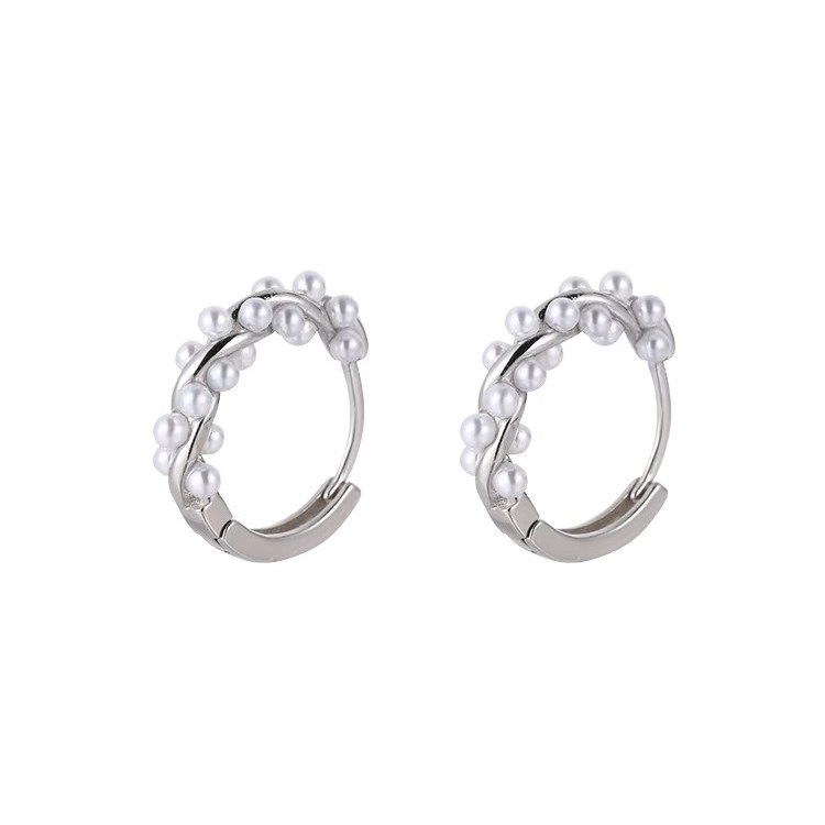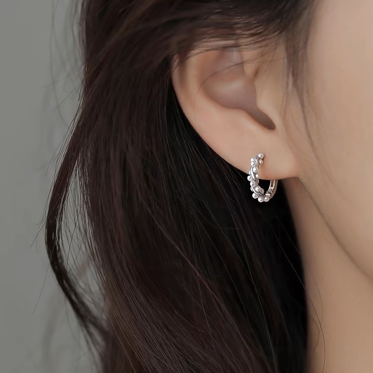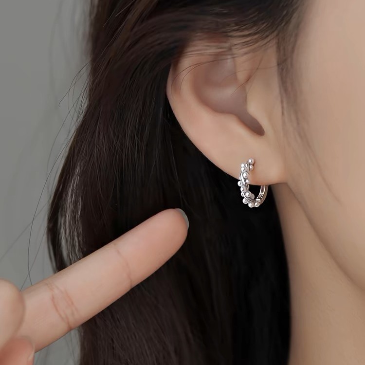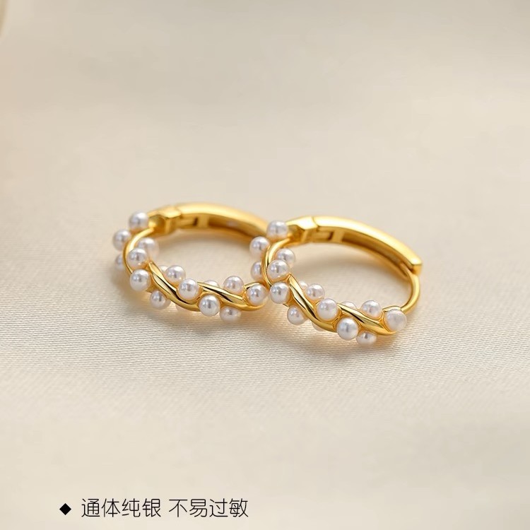 S999 Sterling Silver Vine Pearl Earrings Women's Cold Chanel Ear Ring High-end Retro French Wrap Ear Buckle