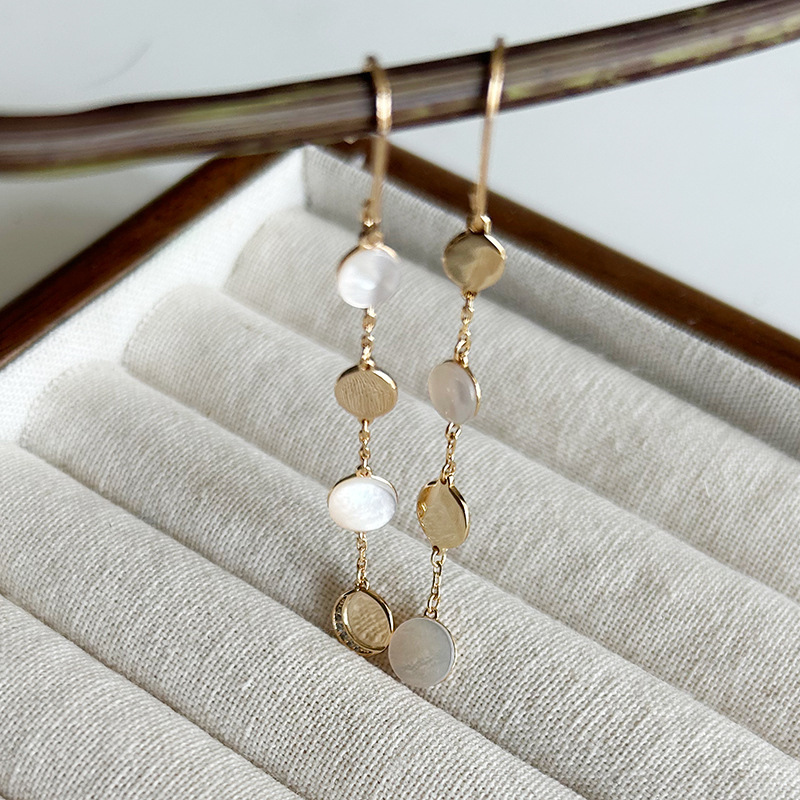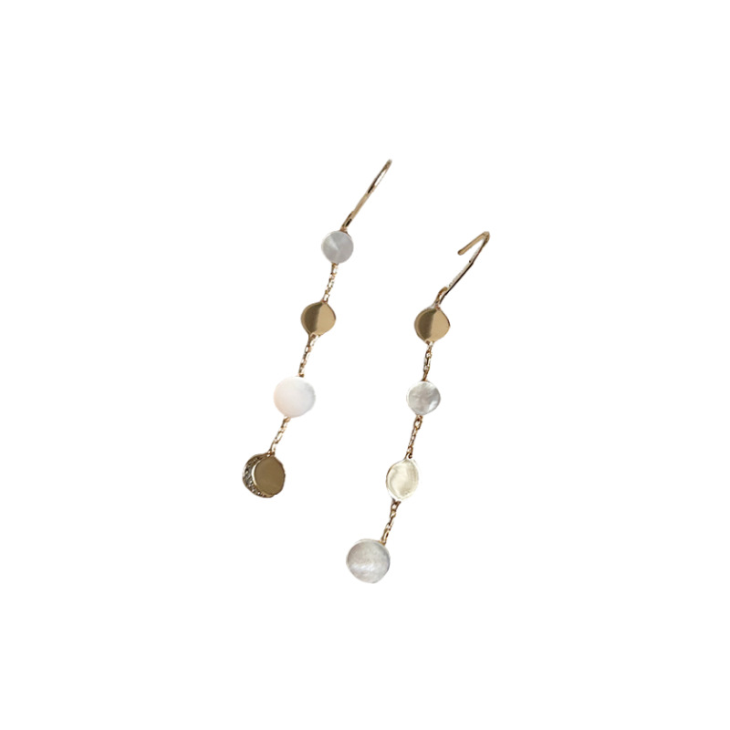The Story of Rose Huang Yimei and Liu Yifei Earrings Simple White Shell Moon Asymmetric Tassel Ear Hook