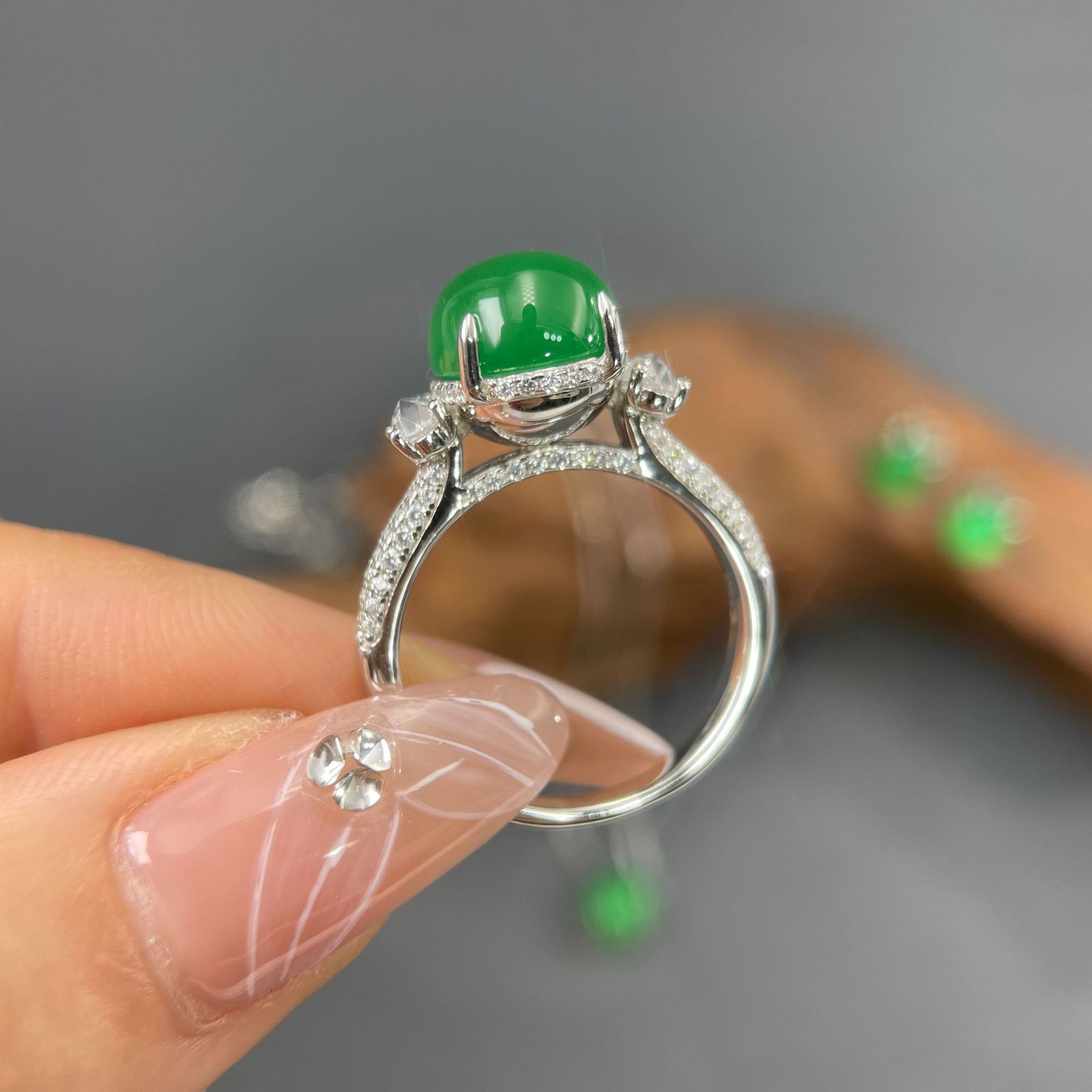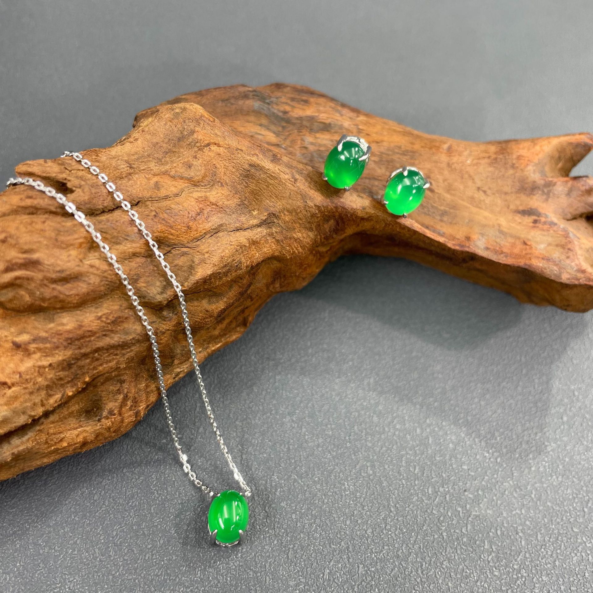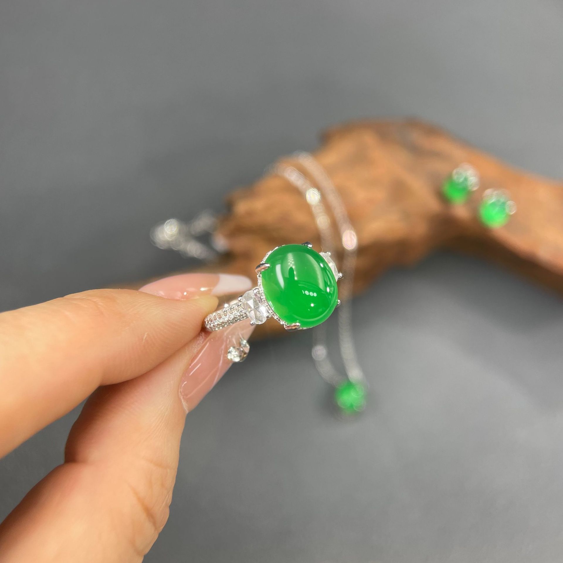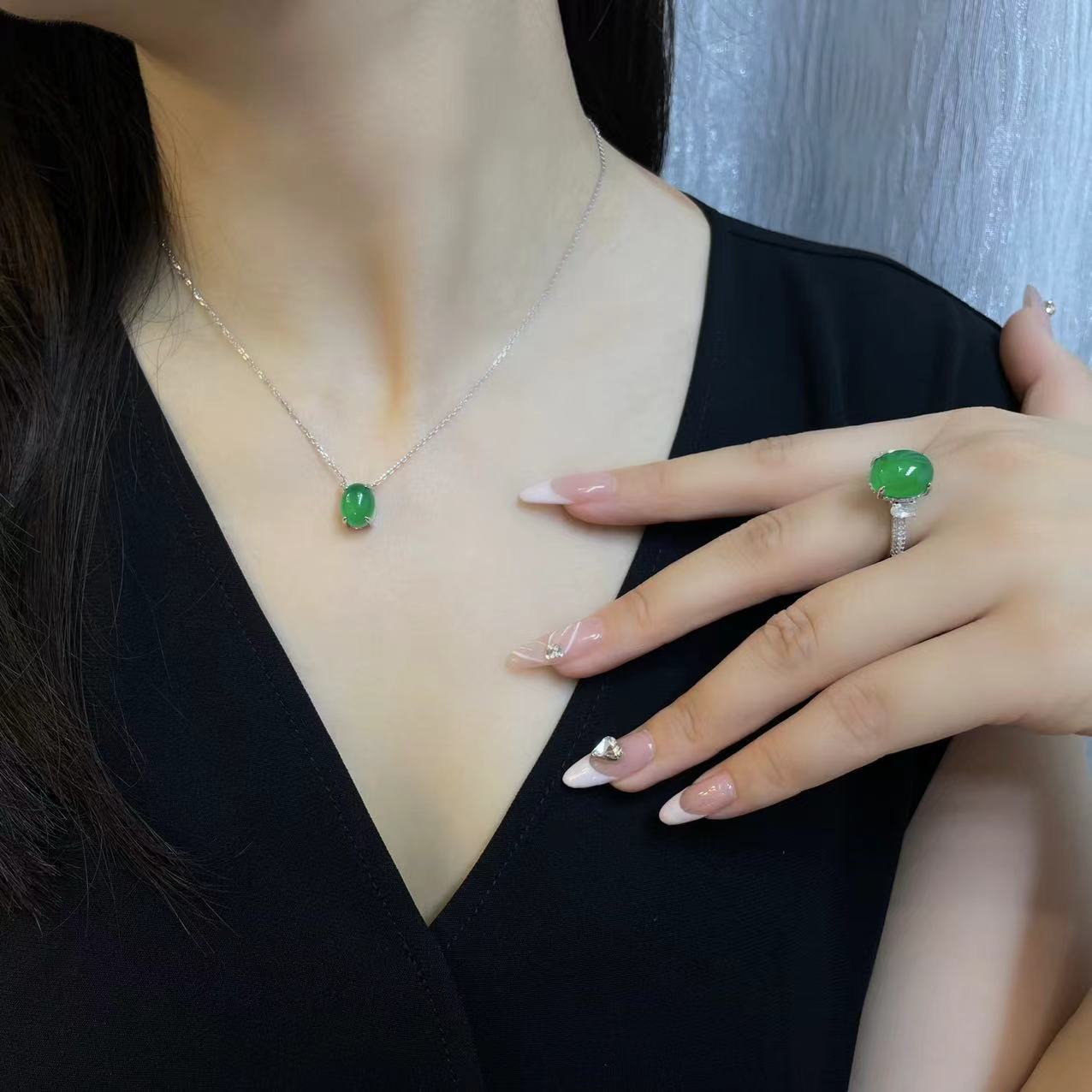 Natural Chalcedony suit New Chinese Women's Zhengyang Green Egg Noodles Ice S925 Silver All-match suit Necklace Ring