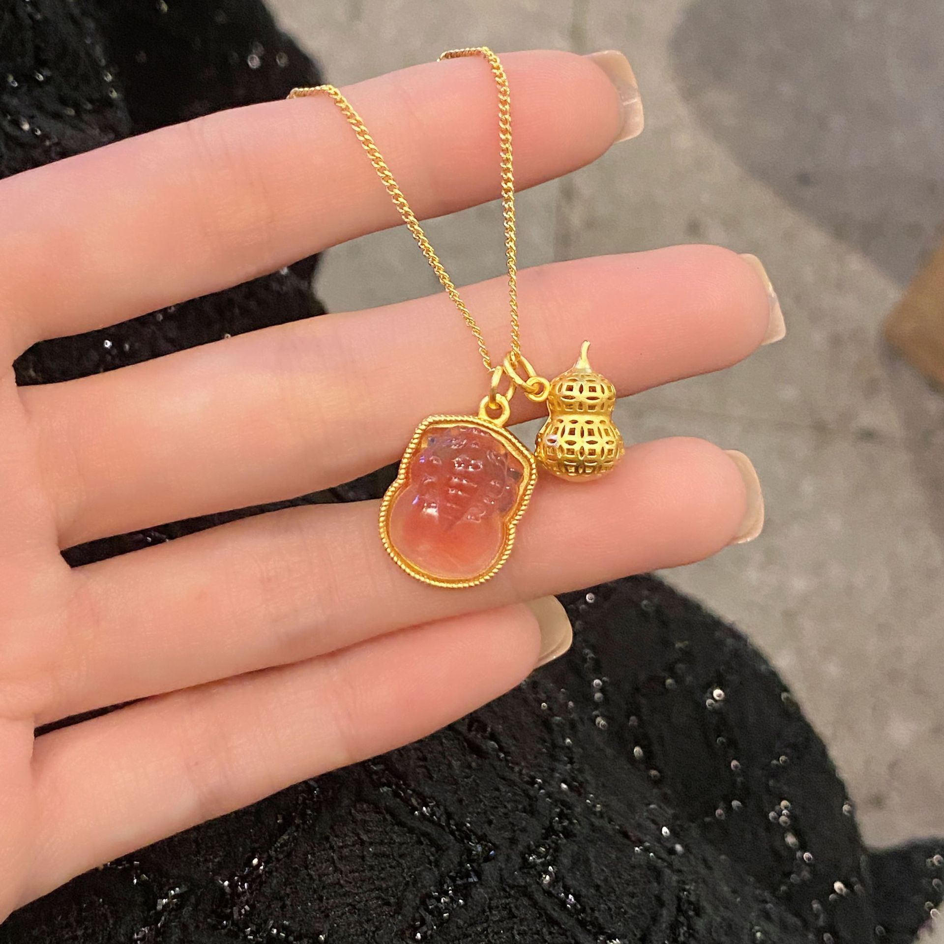 Color: Gourd pixiu necklace gold color