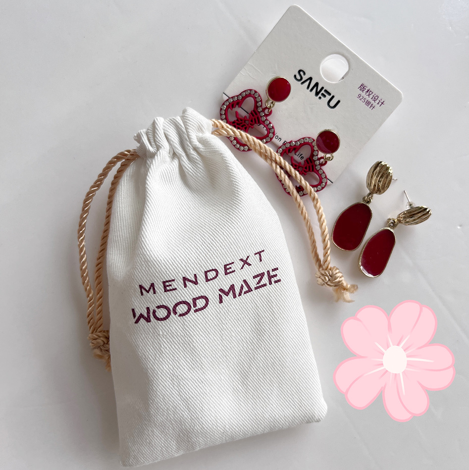 Pure Cotton Small Bag Wholesale Jewelry Storage Bundle Flap Pocket Pants Custom-Made Professional Design Logo Drawstring Environmentally Friendly Cotton Bag