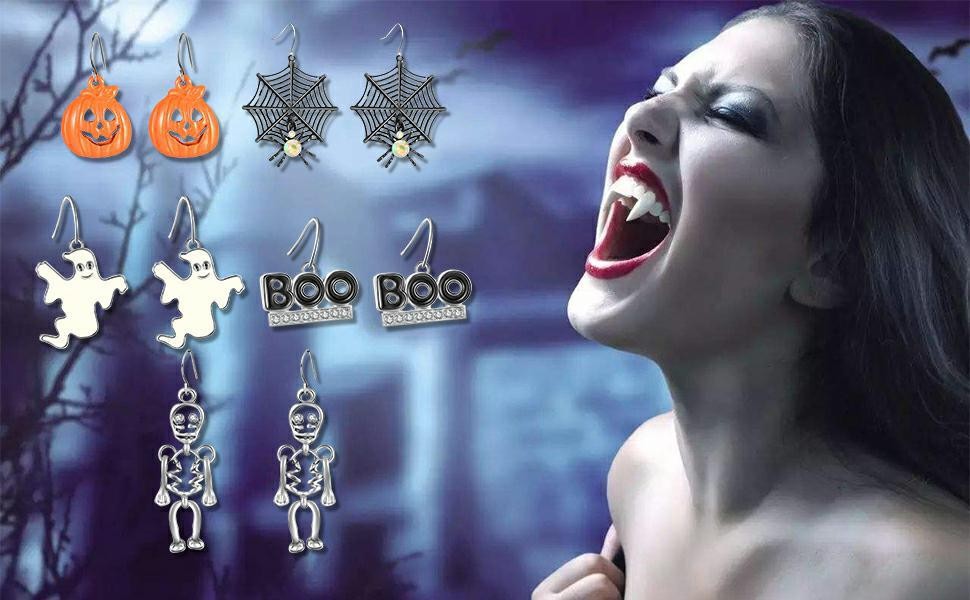 New cross-border Halloween earrings horror funny jewelry personality skull spider pumpkin earrings suit wholesale