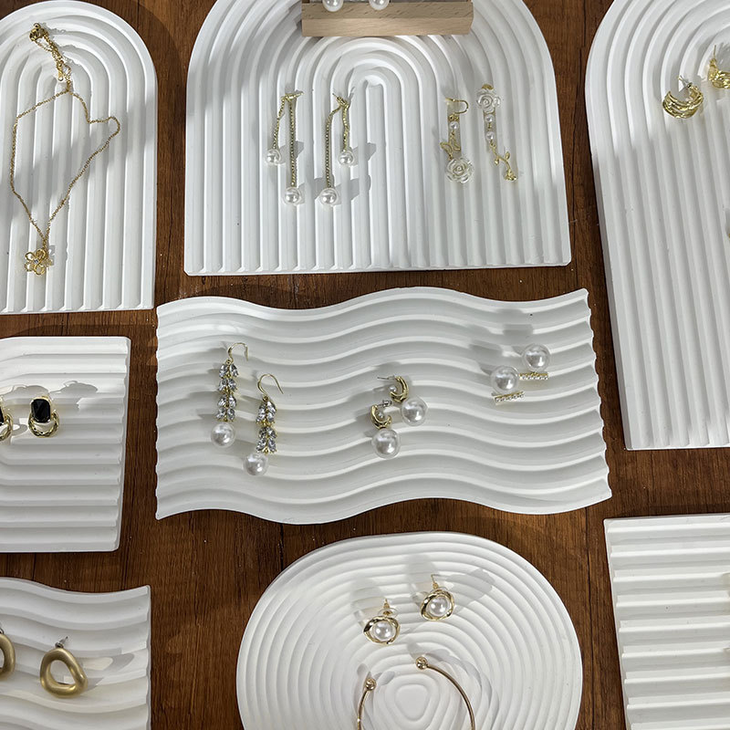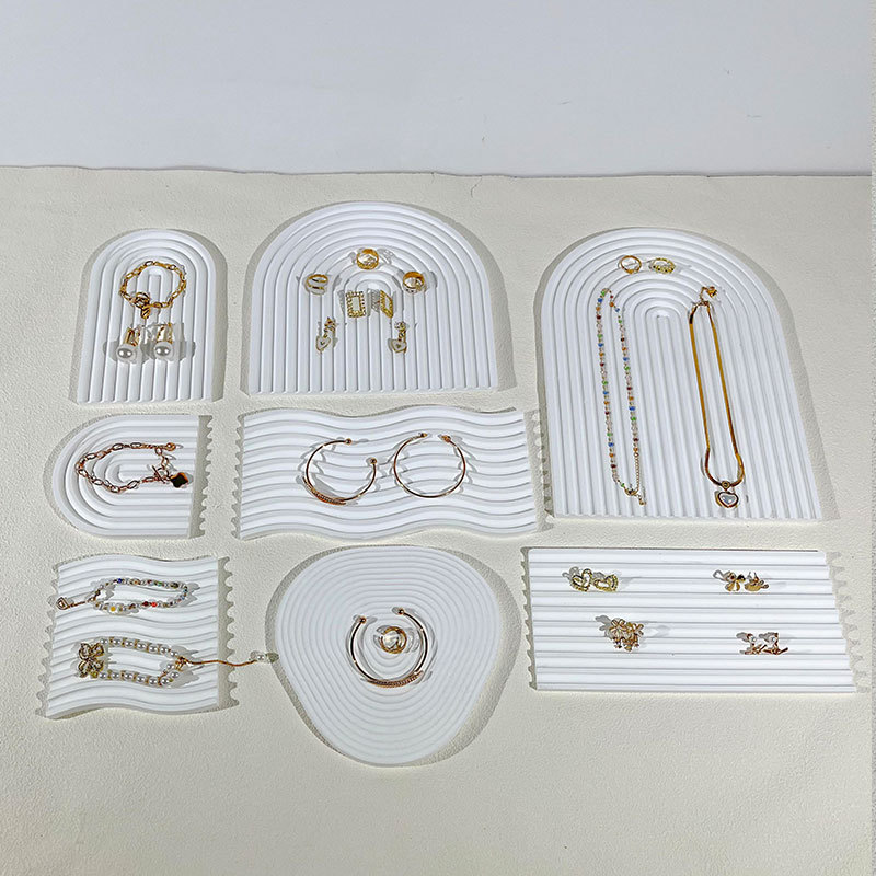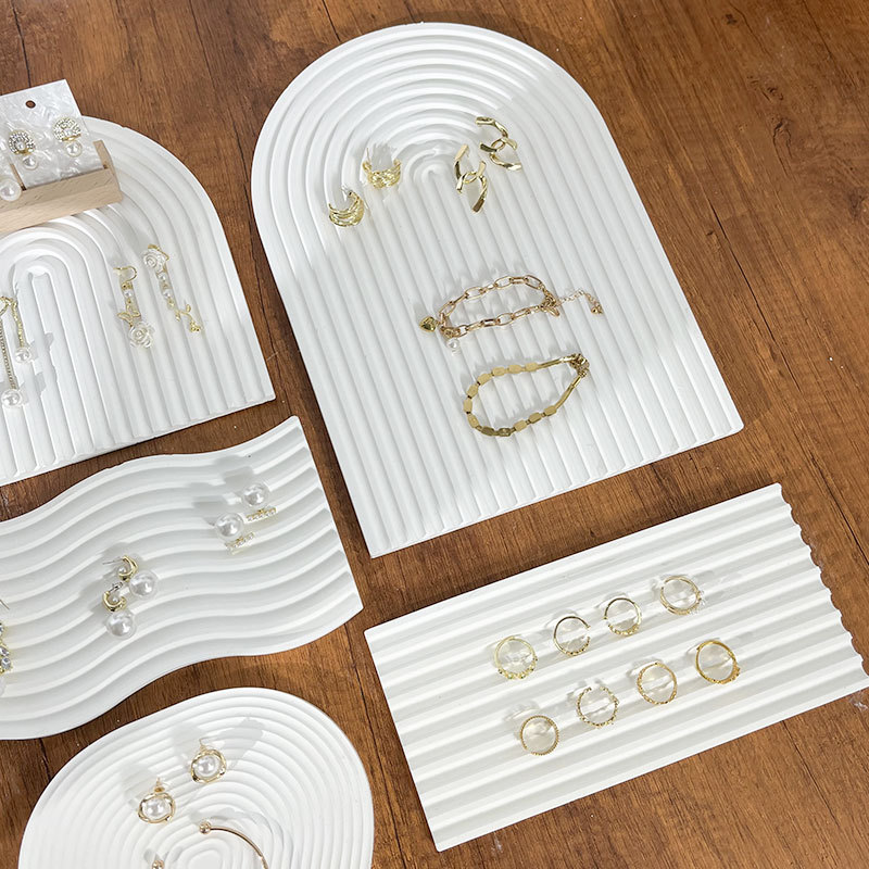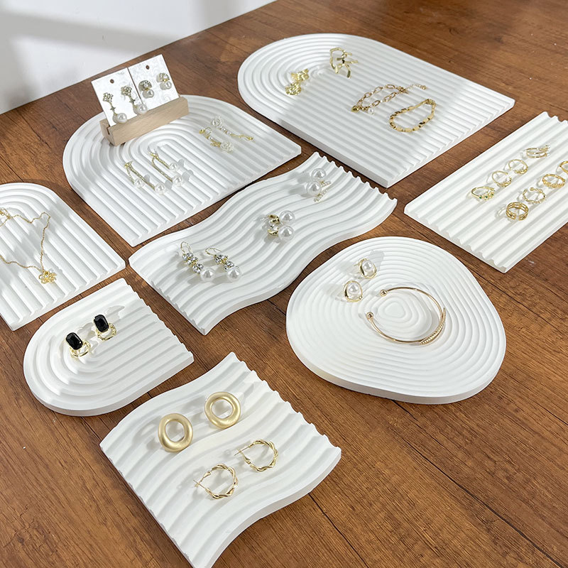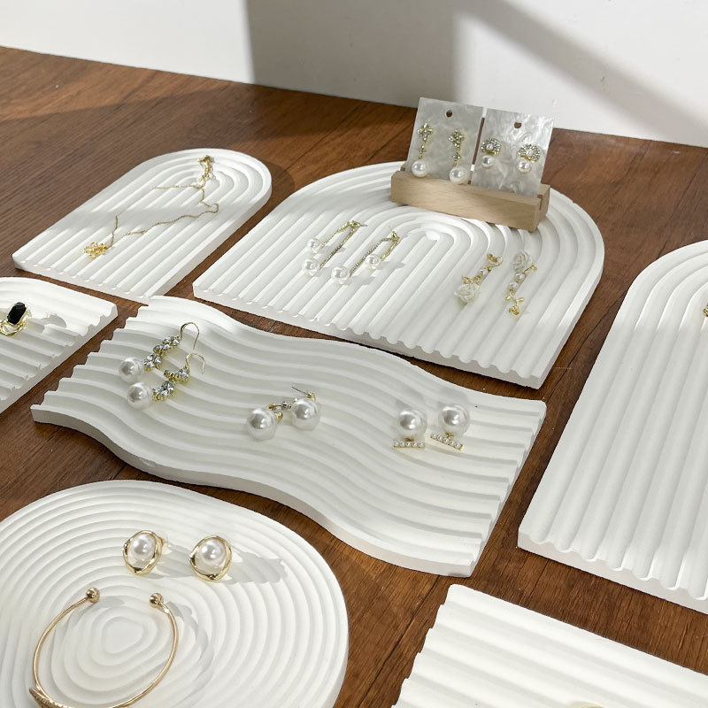Jewelry display rack creative white wave pattern plaster ring earrings necklace storage tray photo display props