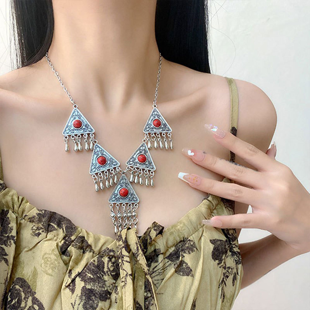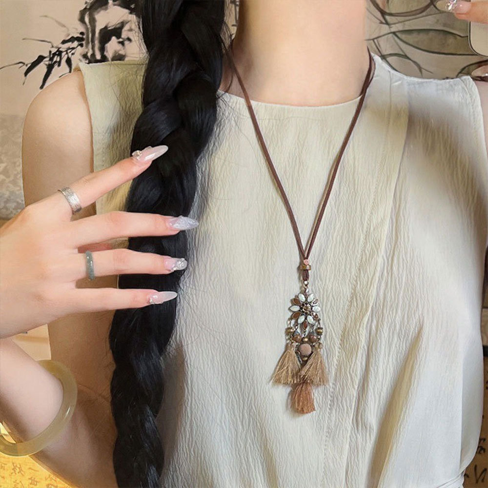 Color: 48#Vintage petal tassel necklace (fa2844)