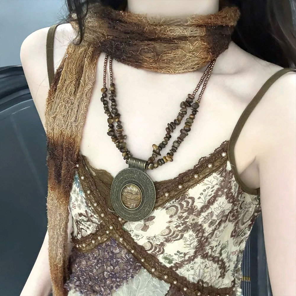 Color: 34#Brown oval piece necklace (ea0118)