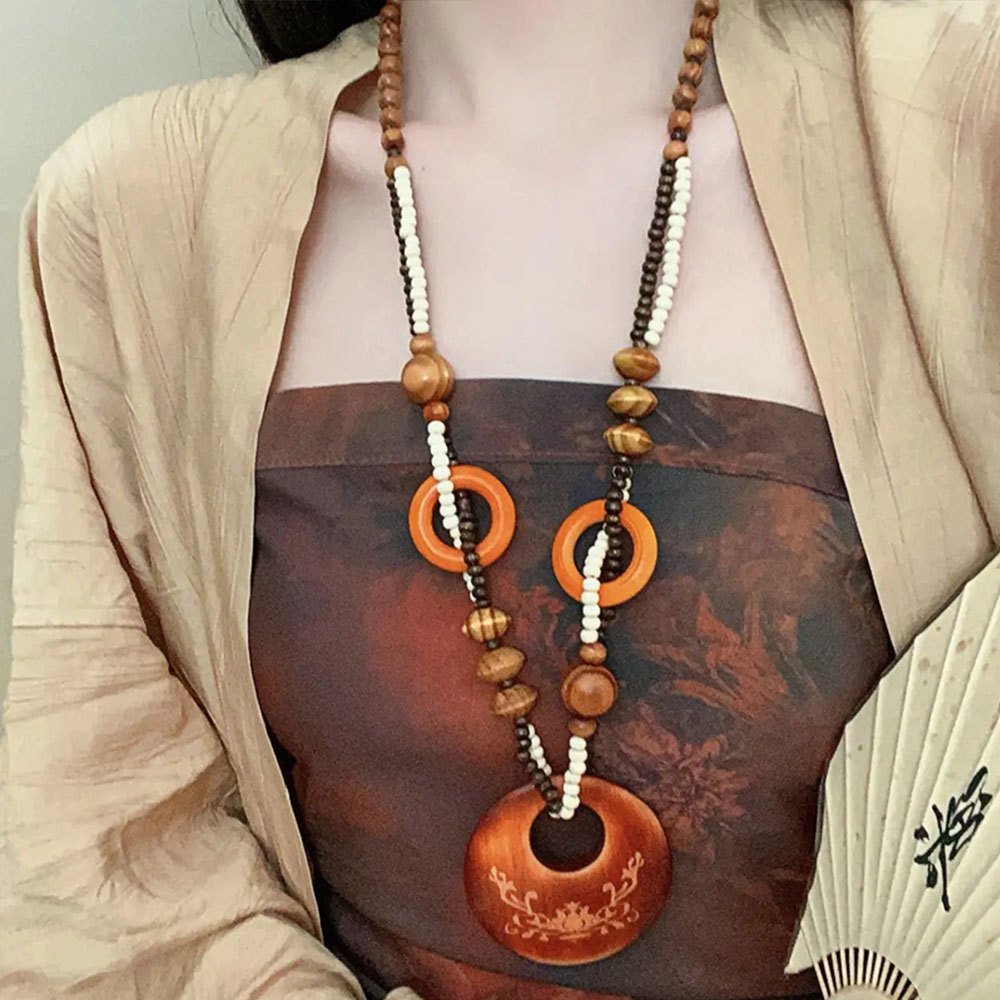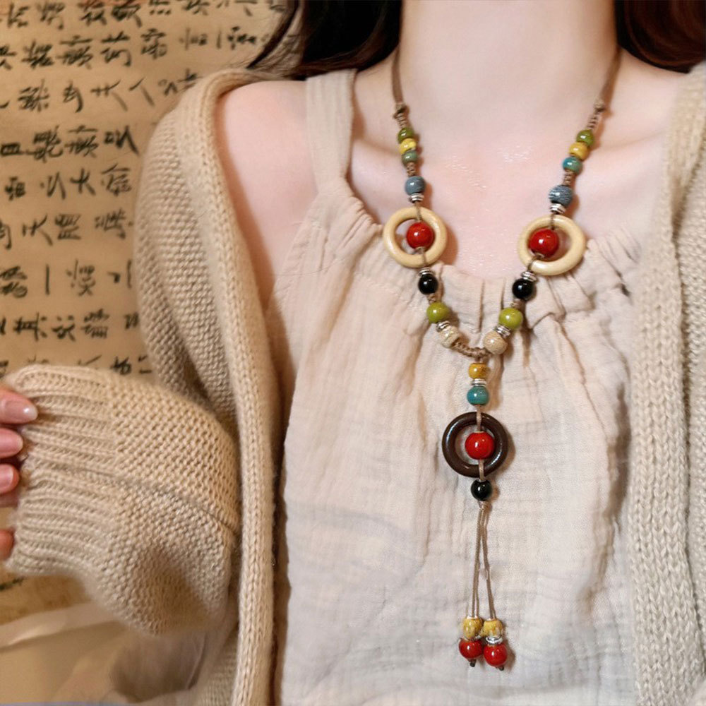 Color: 4#Round wooden bead necklace (da2328)