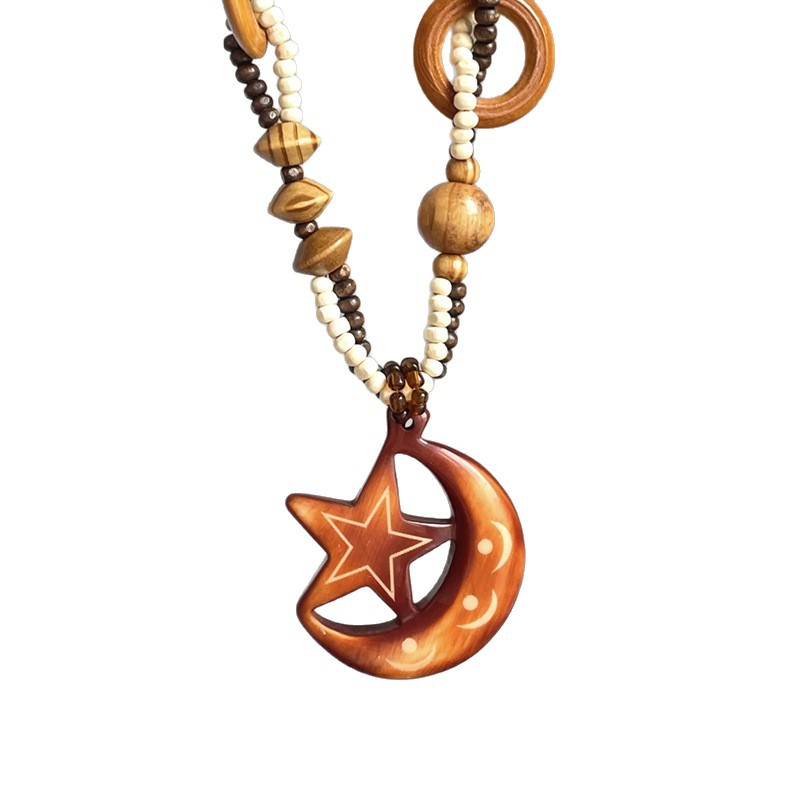 Color: 5#Star and moon wooden bead necklace (da2343)