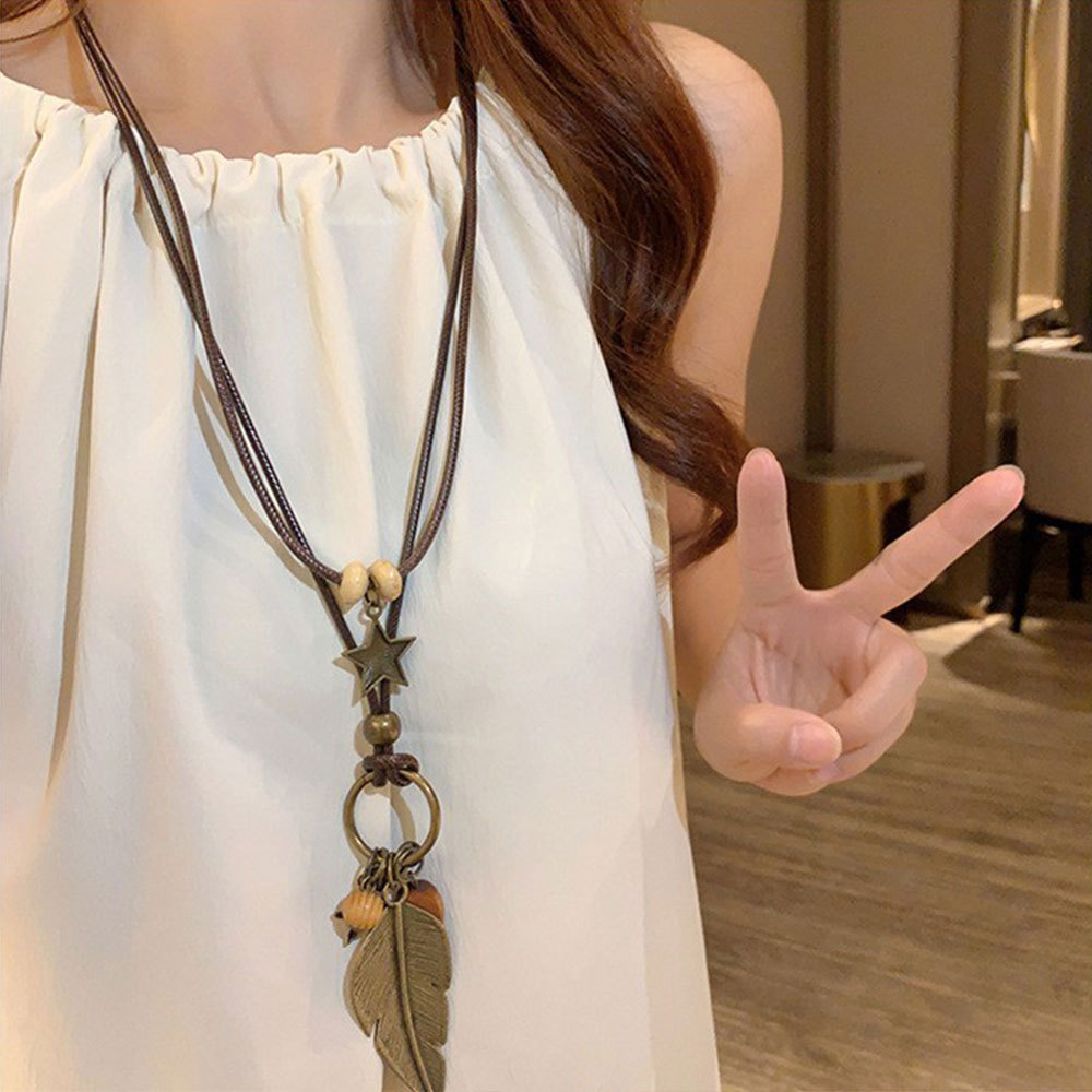 Color: 13#Double leather cord leaf necklace (a2050)