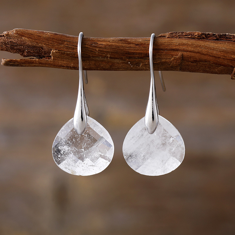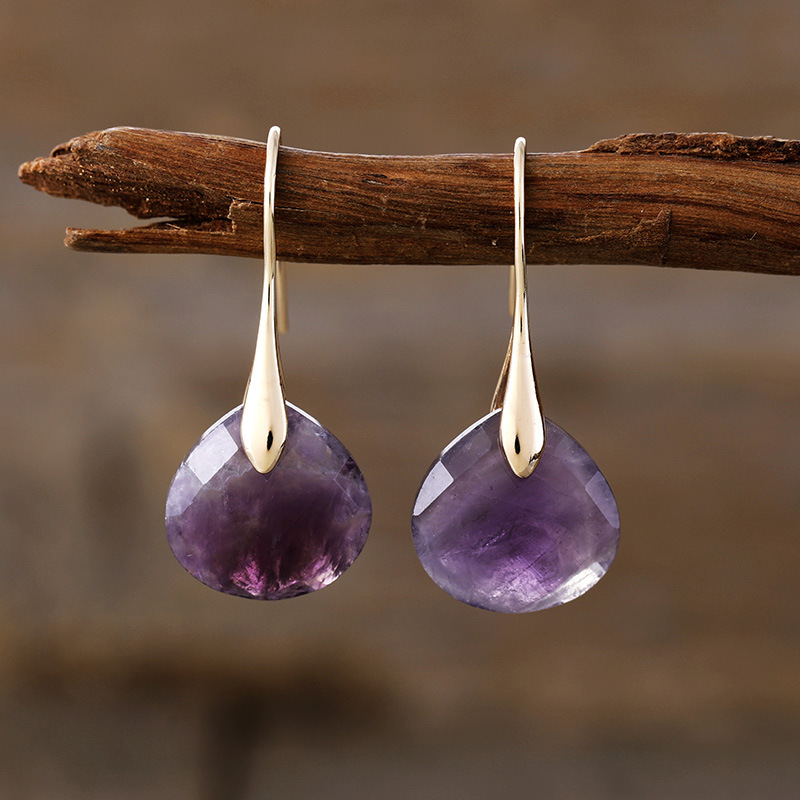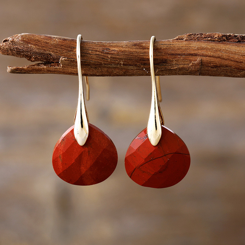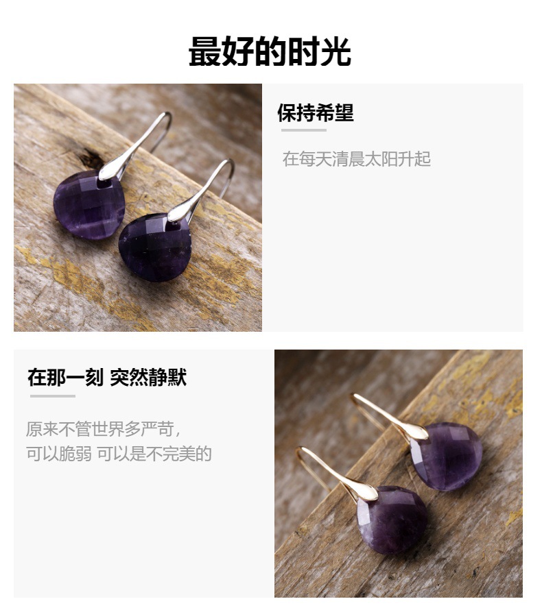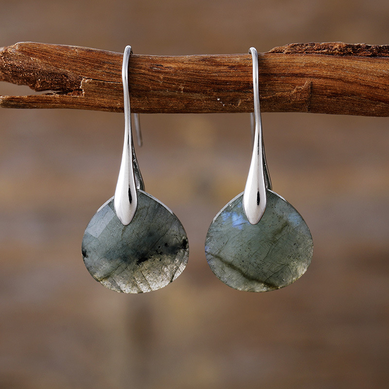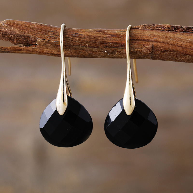 新款民族风天然石水滴耳坠耳钉轻奢欧美设计师饰品