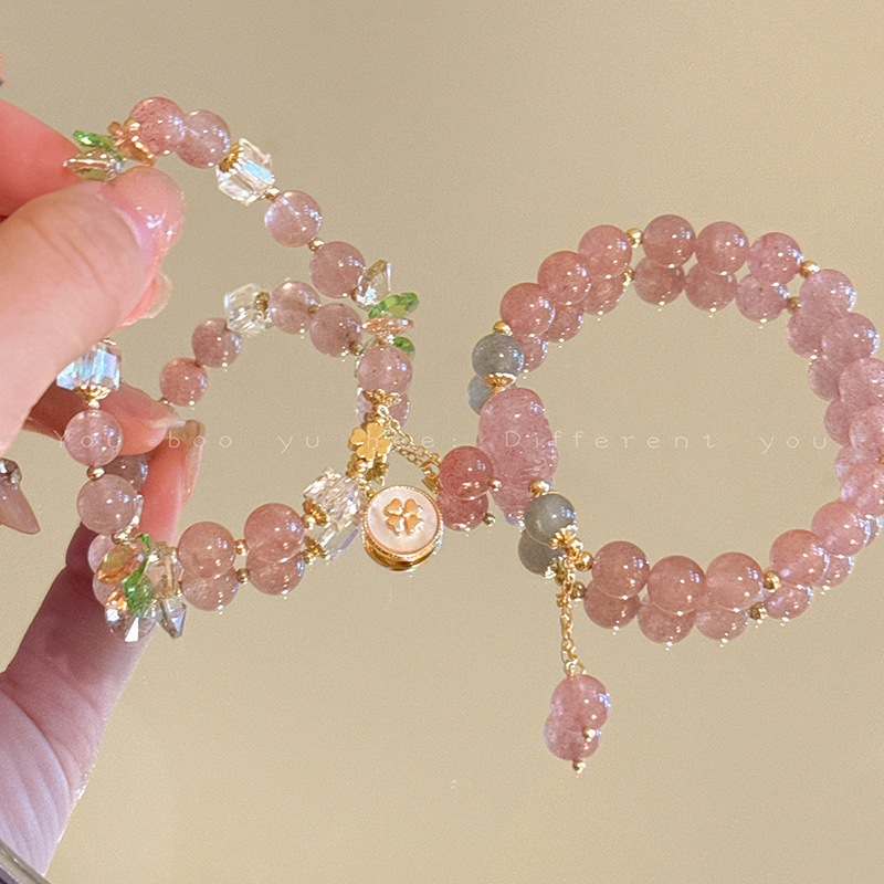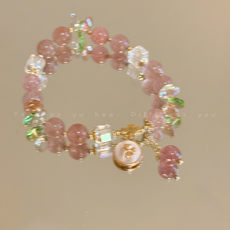 Peach Blossom Strawberry Crystal Pink Beaded Bracelet Women's Light Luxury Niche Delicate High-end Flower Crystal Bracelet Jewelry