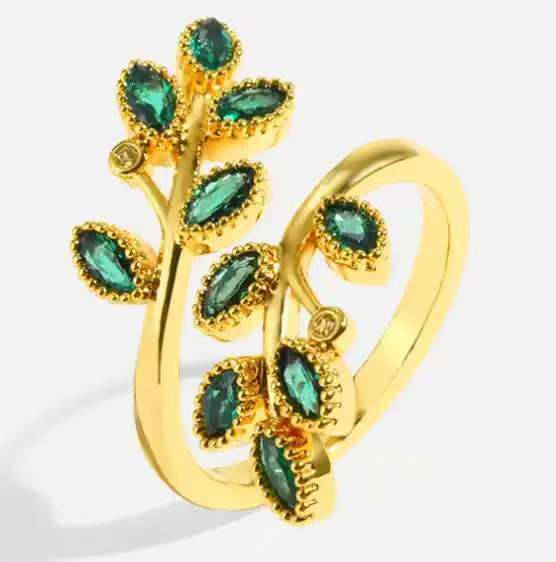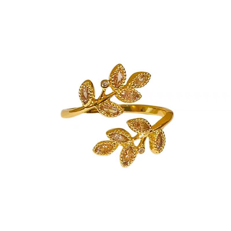 Cross-Border Same Fashion Small Fresh Leaf Open Ring Women's Light Luxury Temperament High-End Index Finger Ring Niche Ring