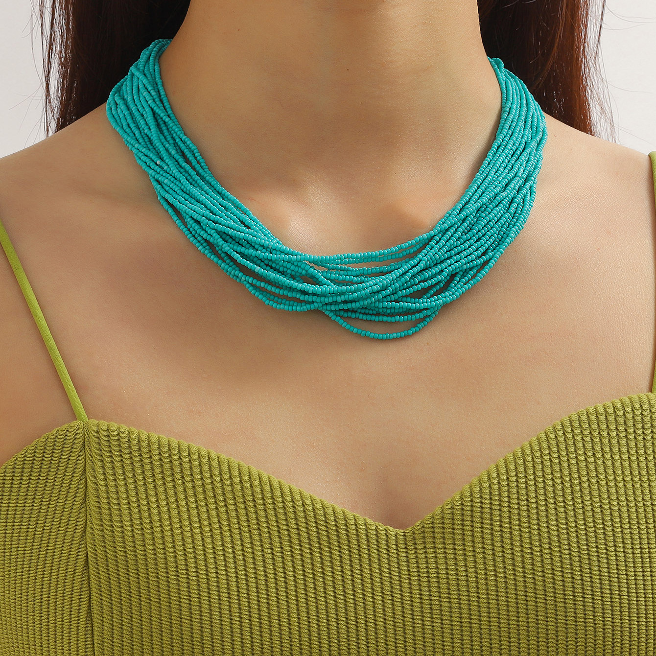 Bohemian Style Rice Beads Women's Multi-Layered Necklace Retro Winding Clavicle Chain Fashionable Personality High-End Necklace
