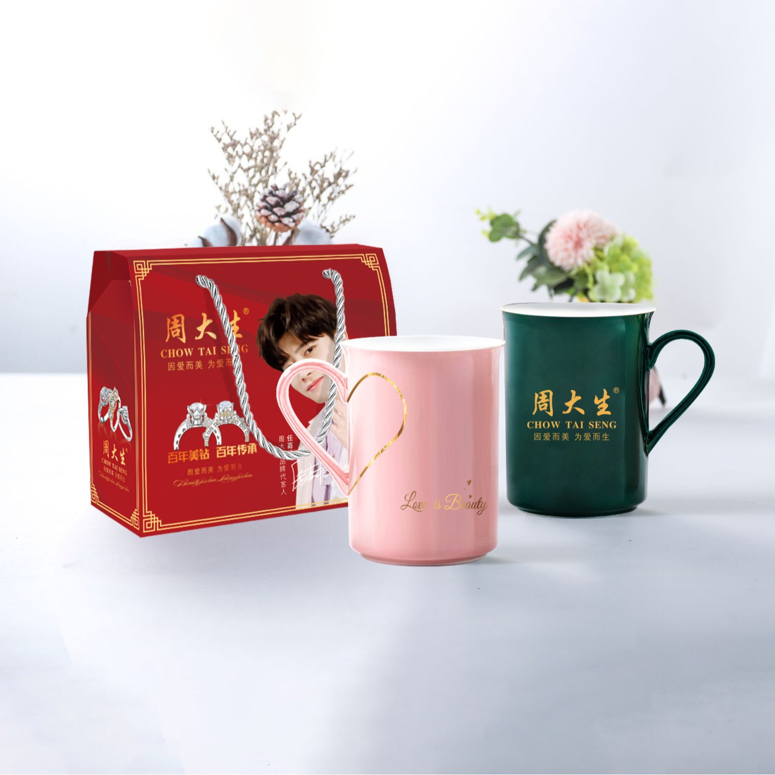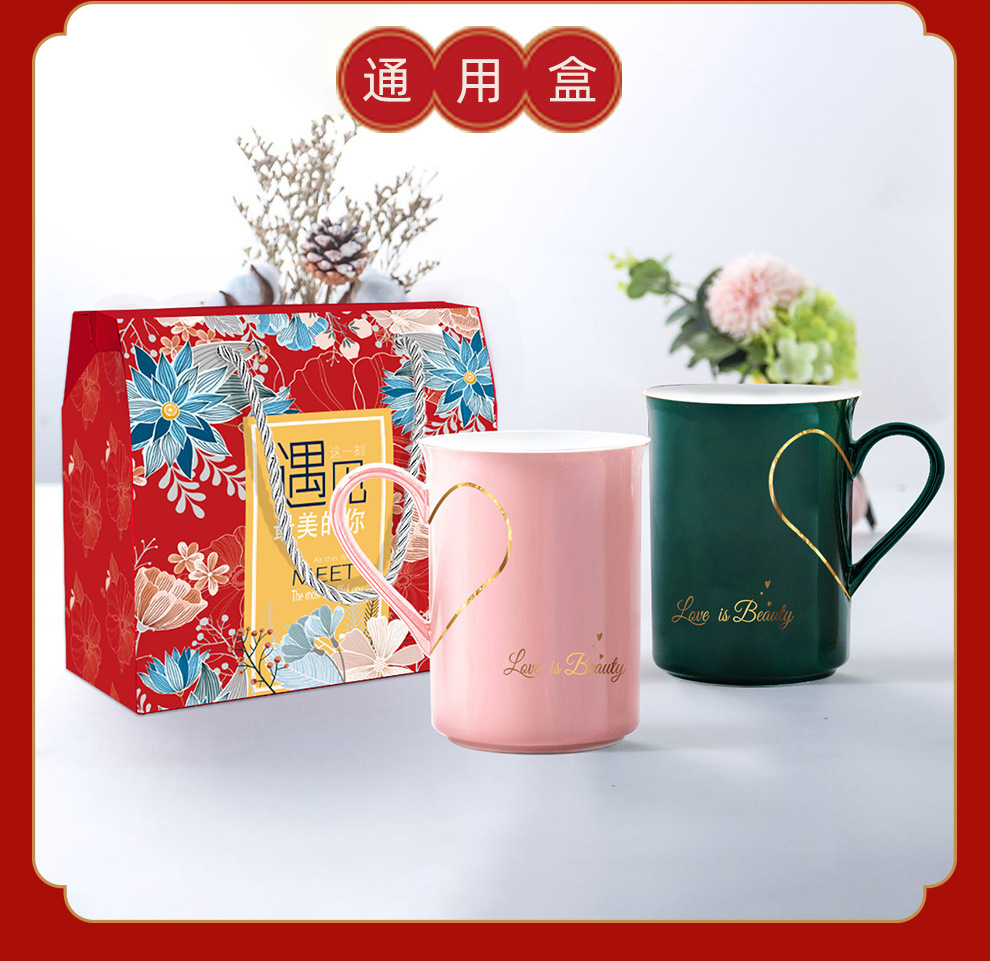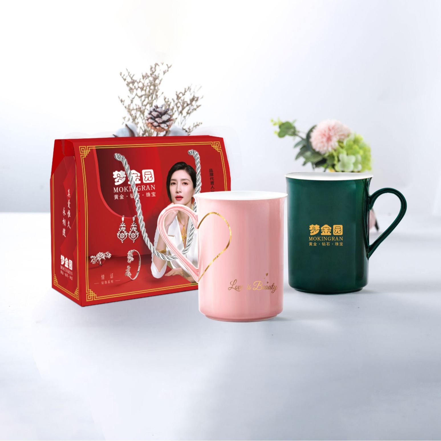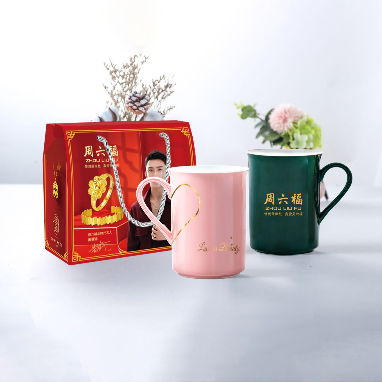 Reverse Peach Heart Couple Pair Coffee Cup Breakfast Cup with Printed LOGO Jewelry Special Edition Jewelry Store Gifts