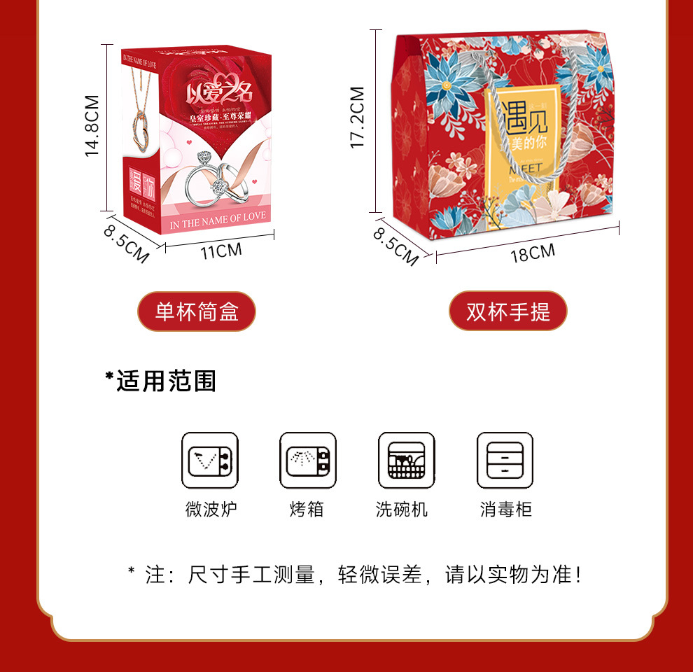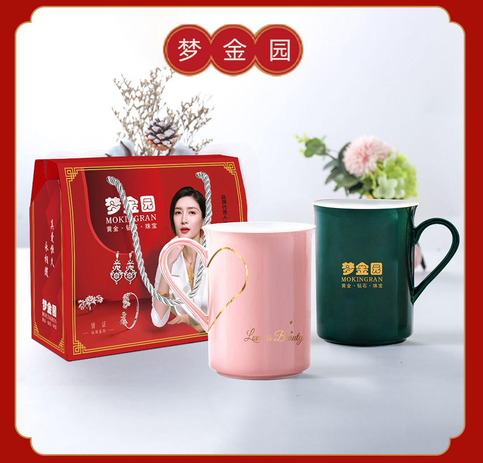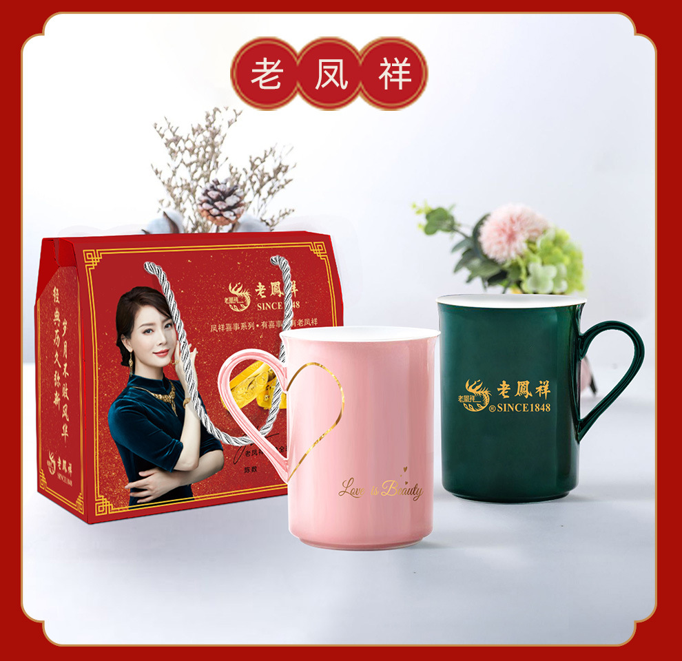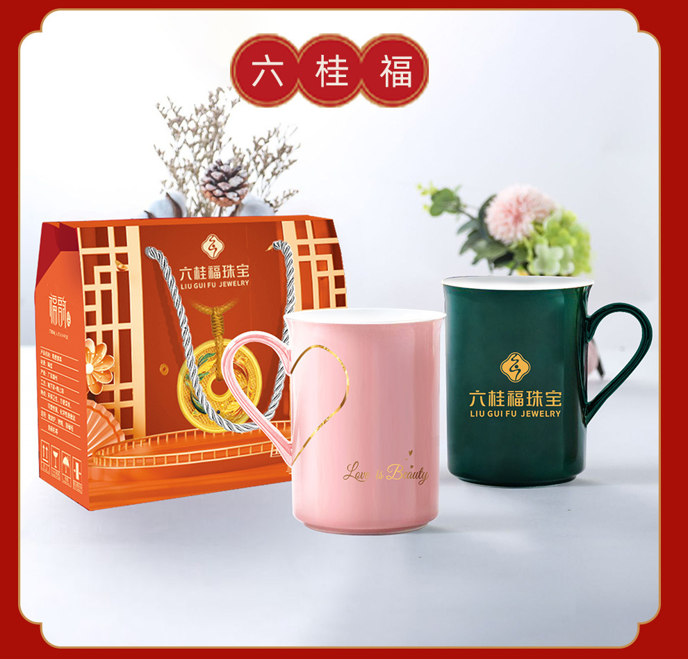 Reverse Peach Heart Couple Pair Coffee Cup Breakfast Cup with Printed LOGO Jewelry Special Edition Jewelry Store Gifts