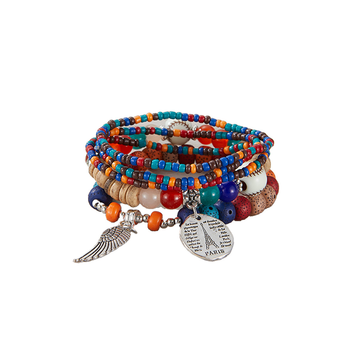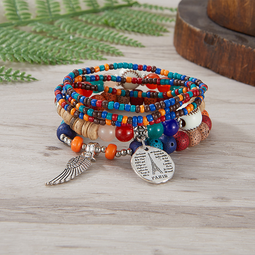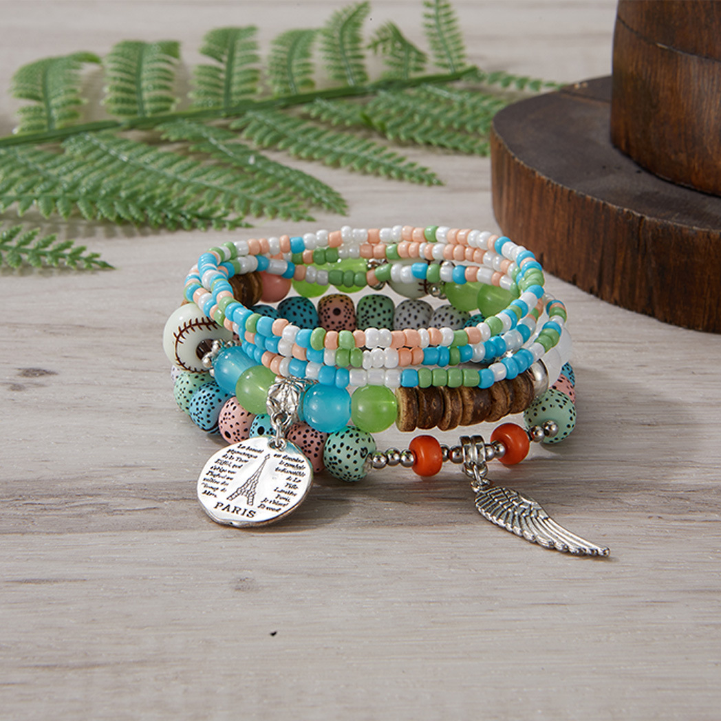 2: Bohemian multi-layered rice bead bracelet wings personalized versatile bracelet ethnic style travel photo bracelet female hair replacement