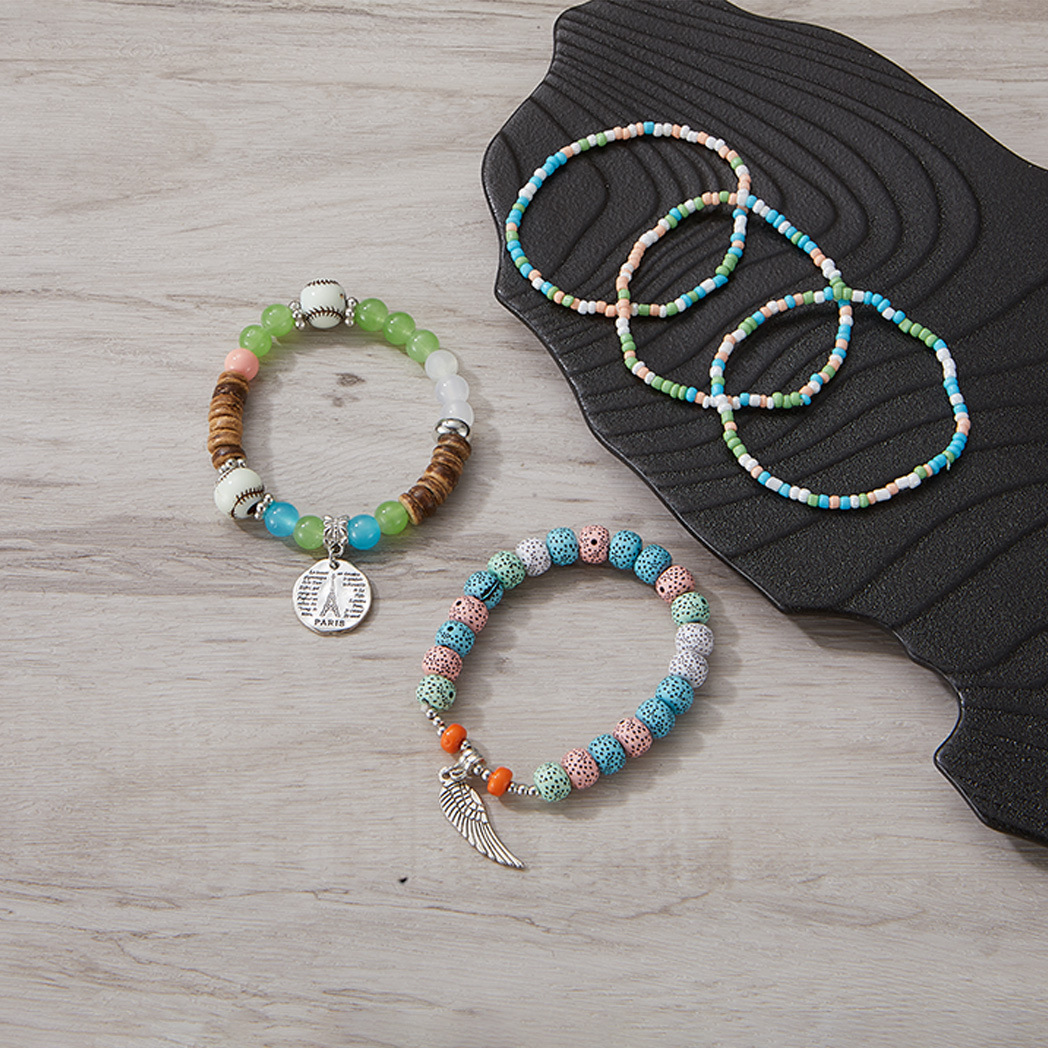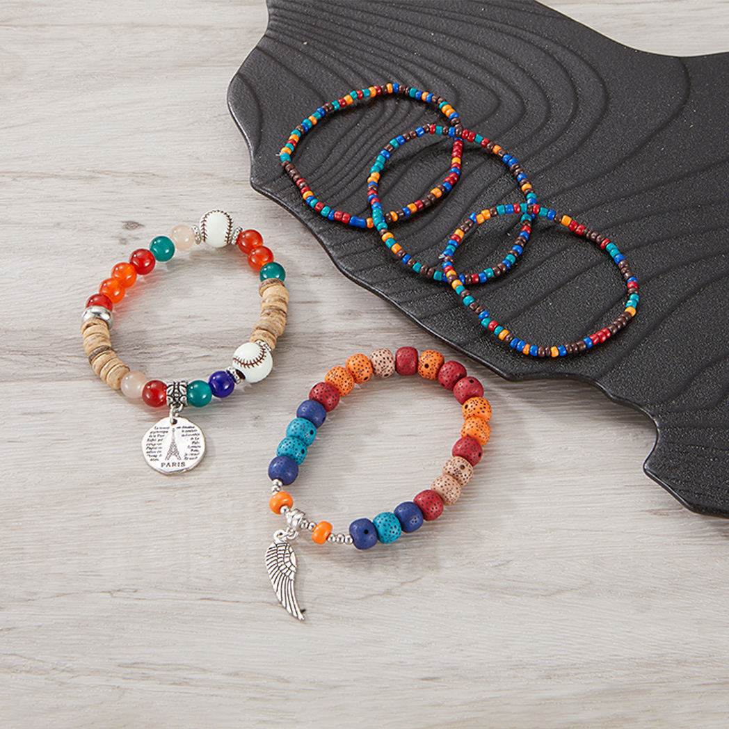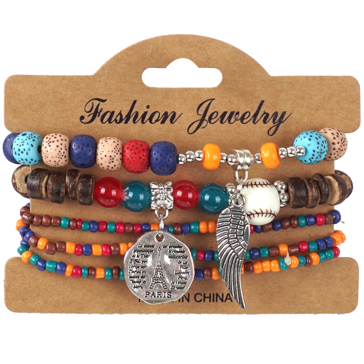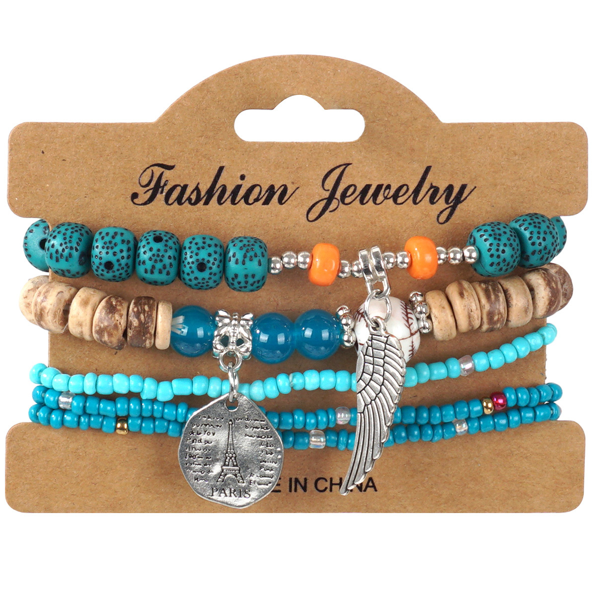2: Bohemian multi-layered rice bead bracelet wings personalized versatile bracelet ethnic style travel photo bracelet female hair replacement