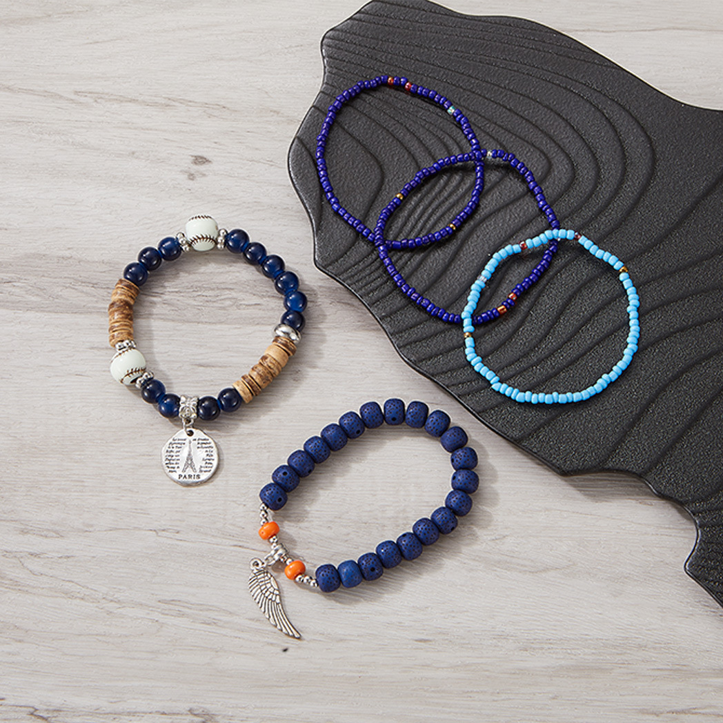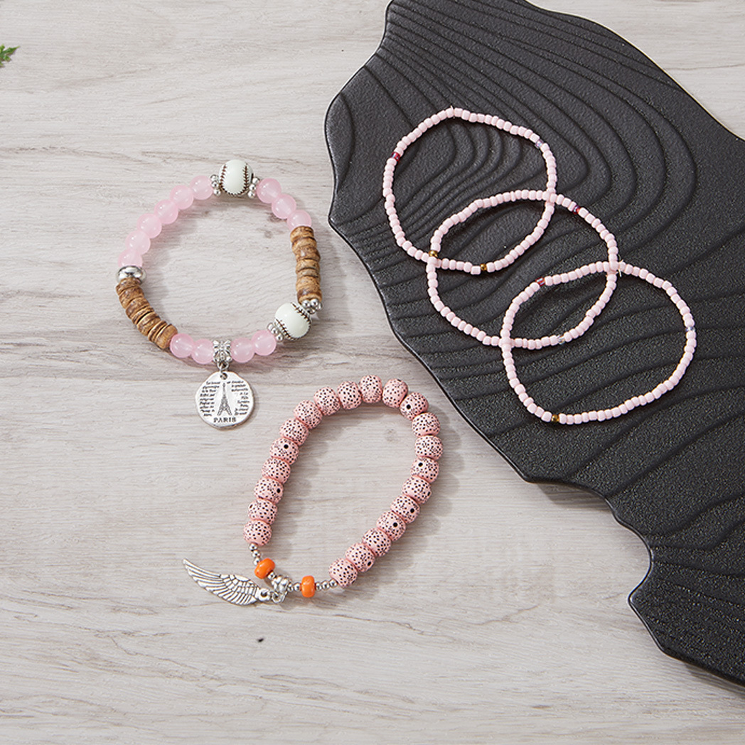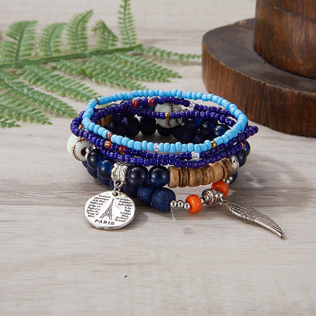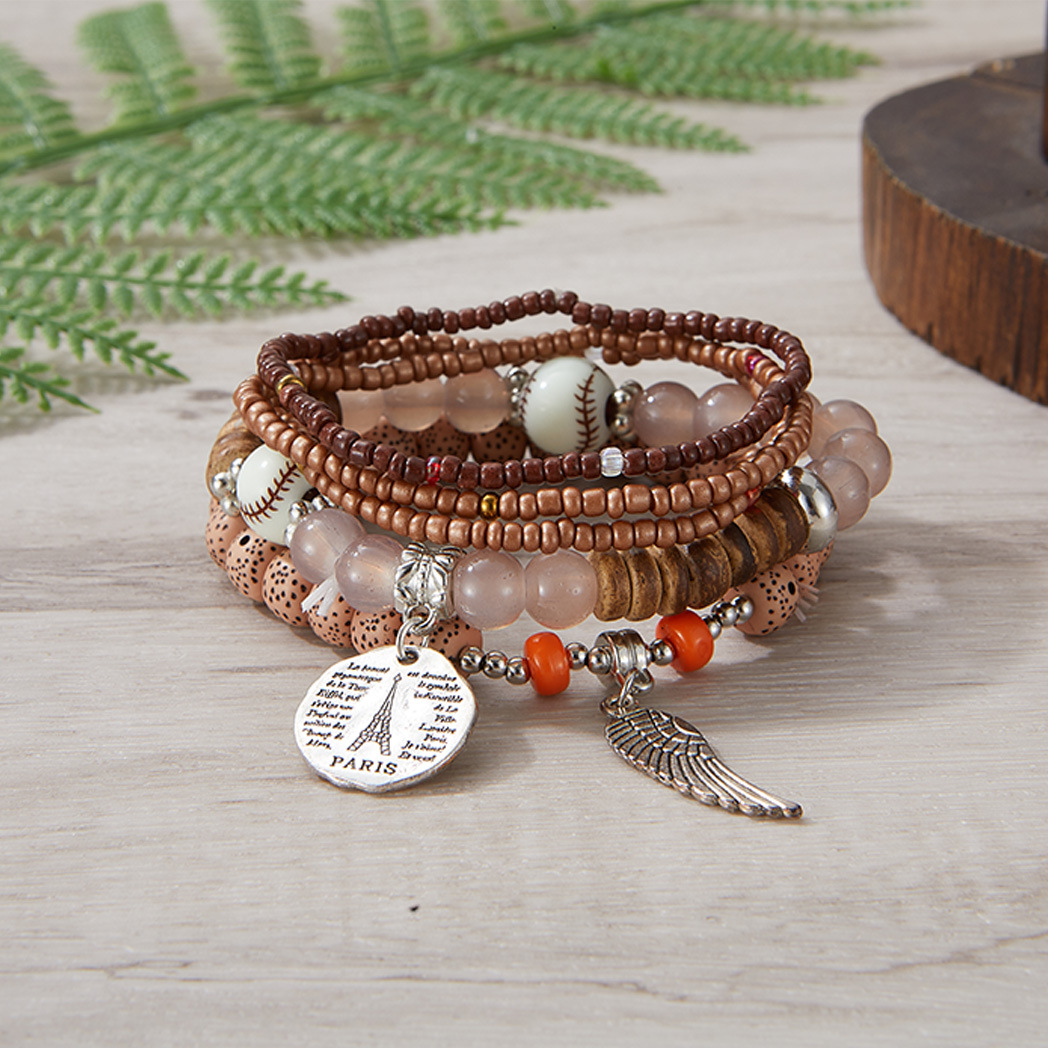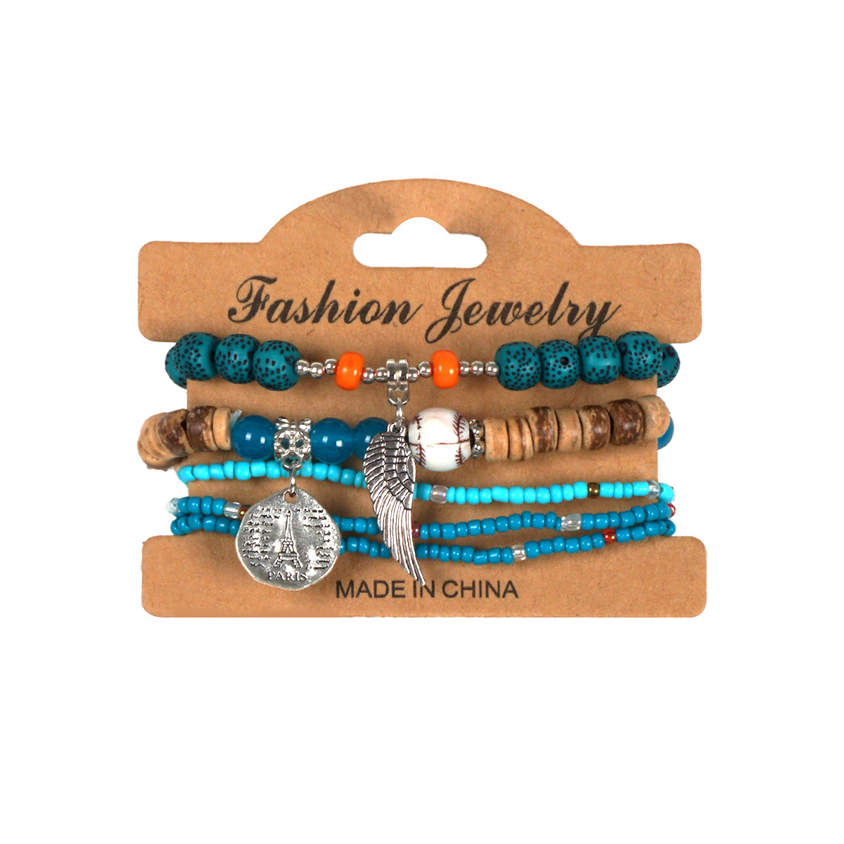 1: Hot-selling exotic bohemia bracelet artsy popular wings iron tower pendant exquisite rice beads suit for women