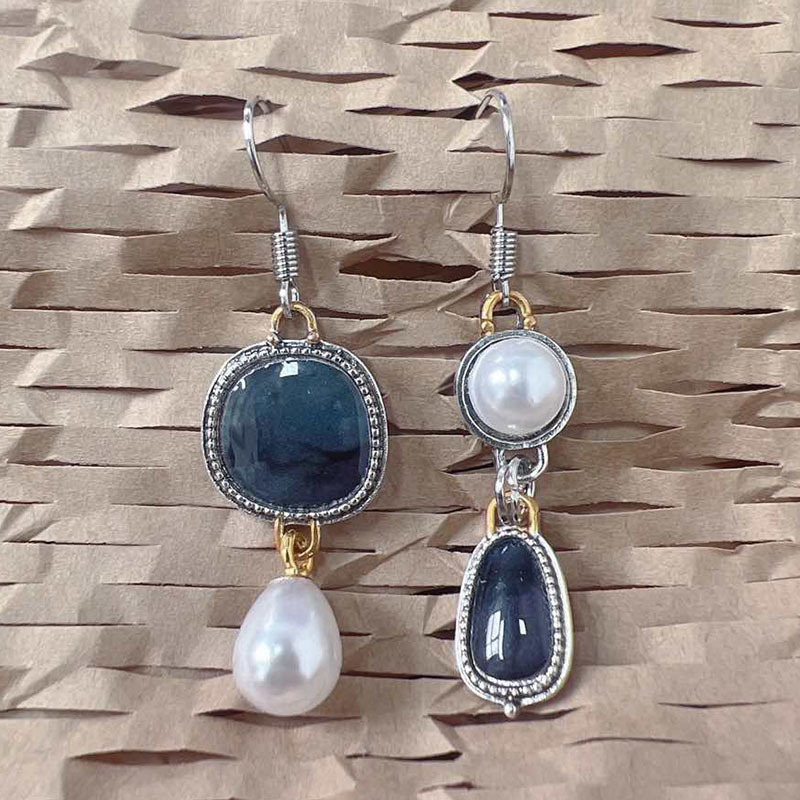 Creative Cross-Border Geometric Asymmetrical Pearl Earrings European and American Popular Two-Color Metal Alloy Earrings Handmade Jewelry