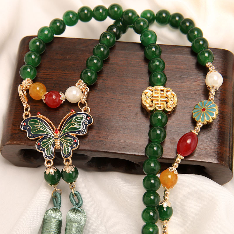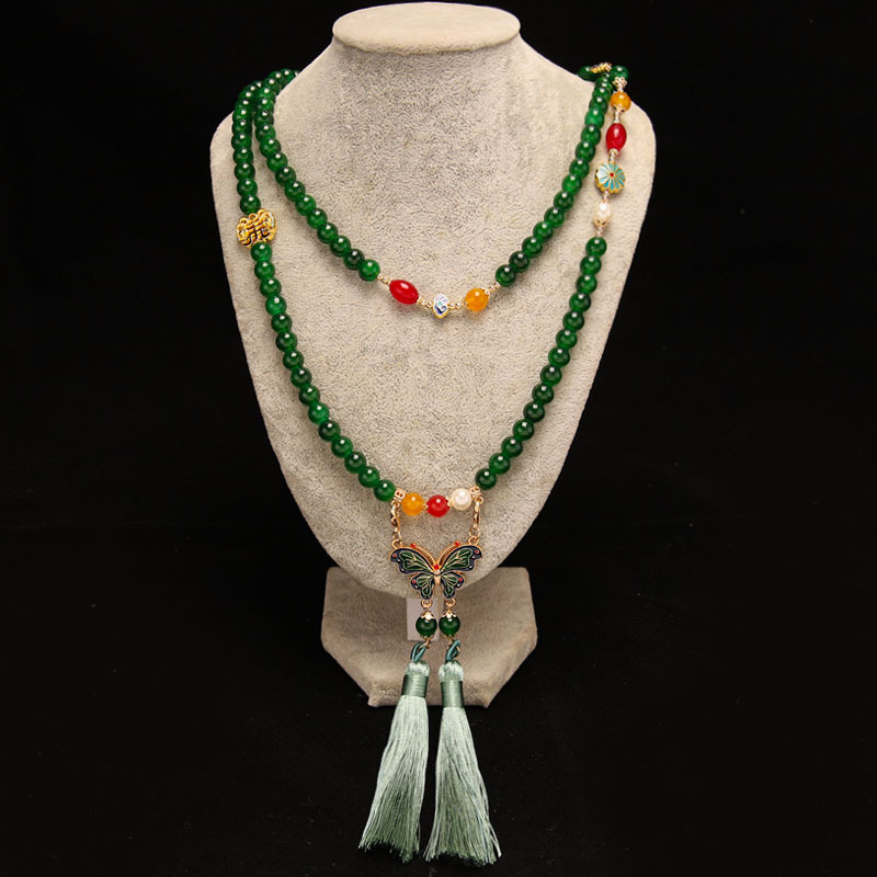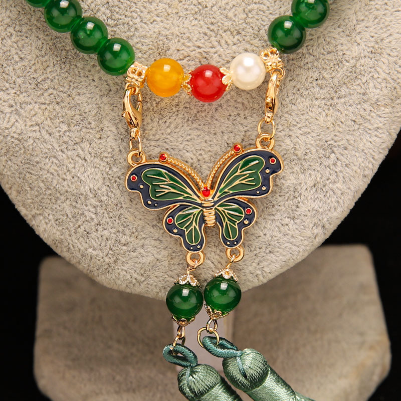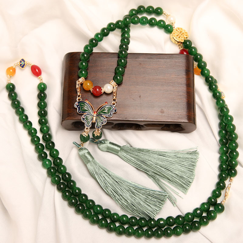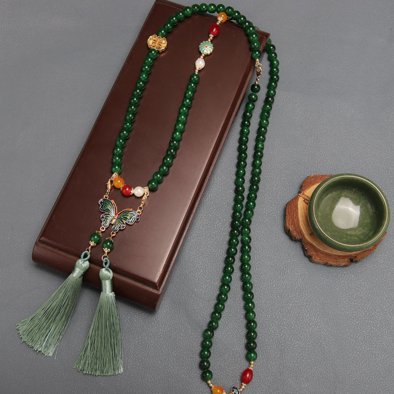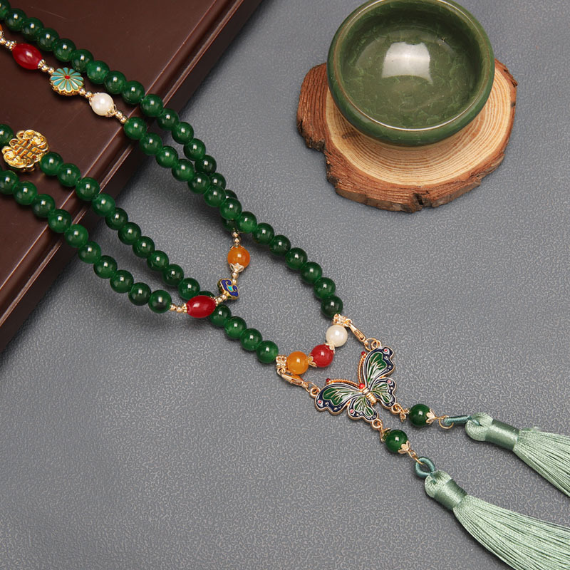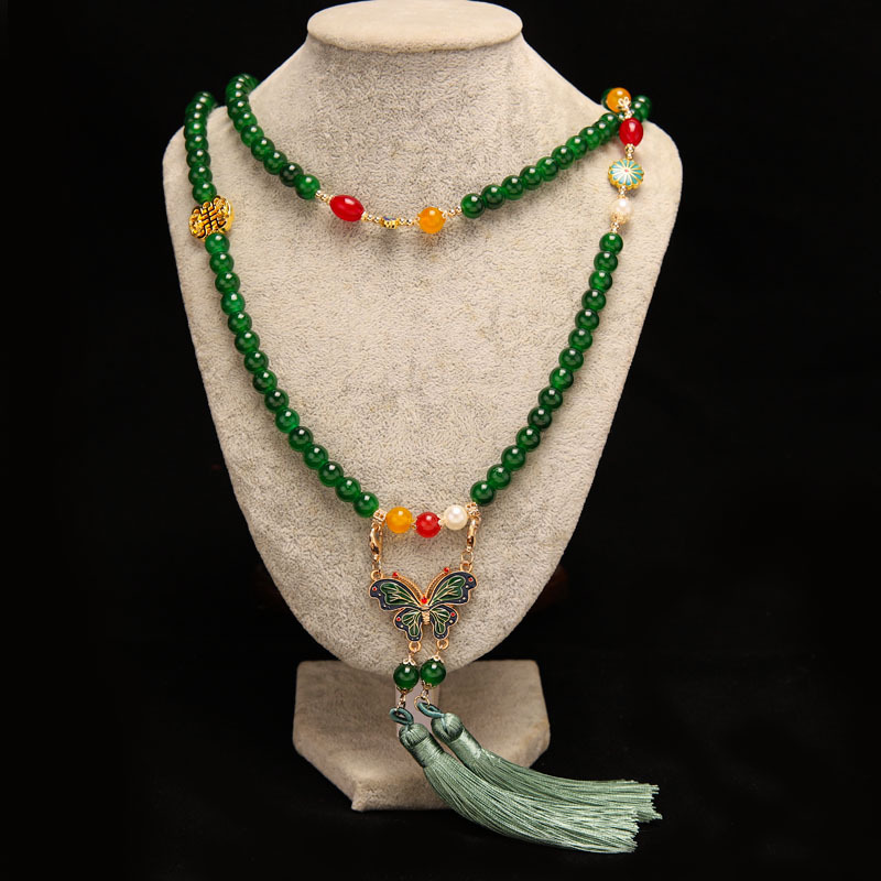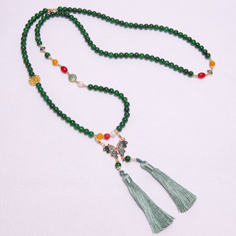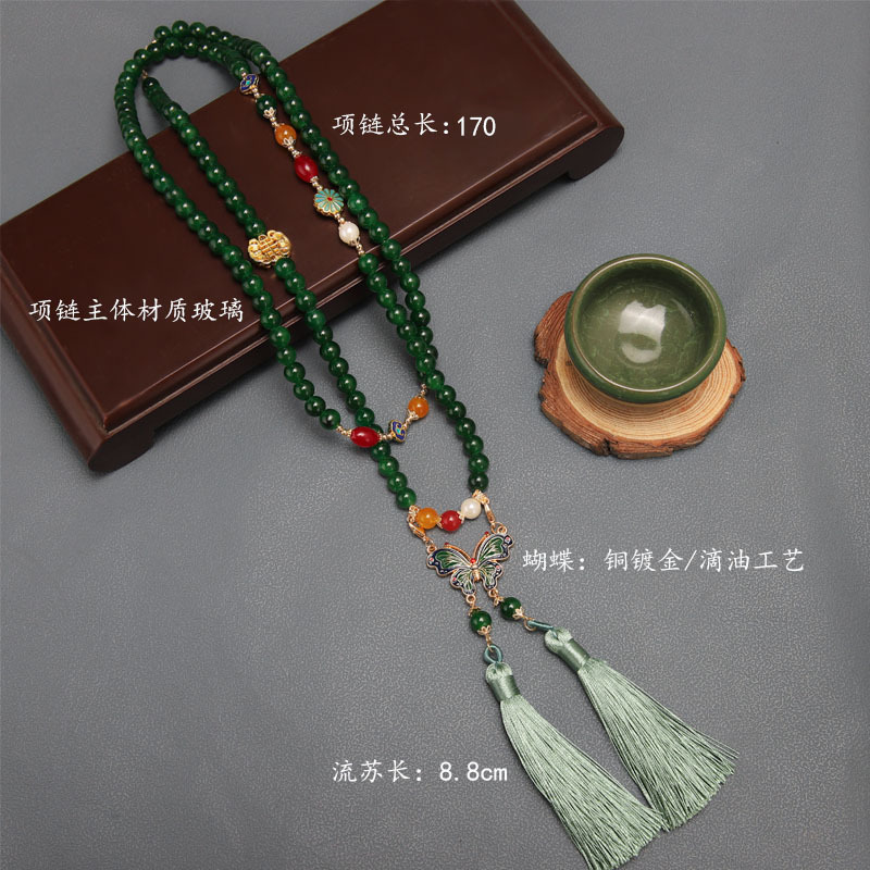 Manufacturer Wholesale Han Dynasty Accessories Double Tassel Long Necklace Ancient Style Soft Necklace Chinese Style Ancient Costume Necklace Butterfly Necklace