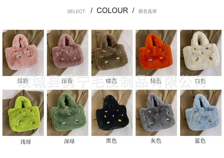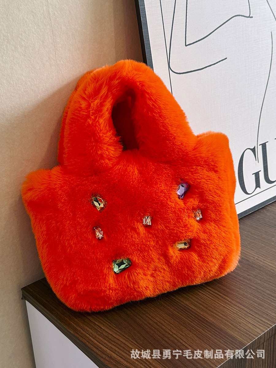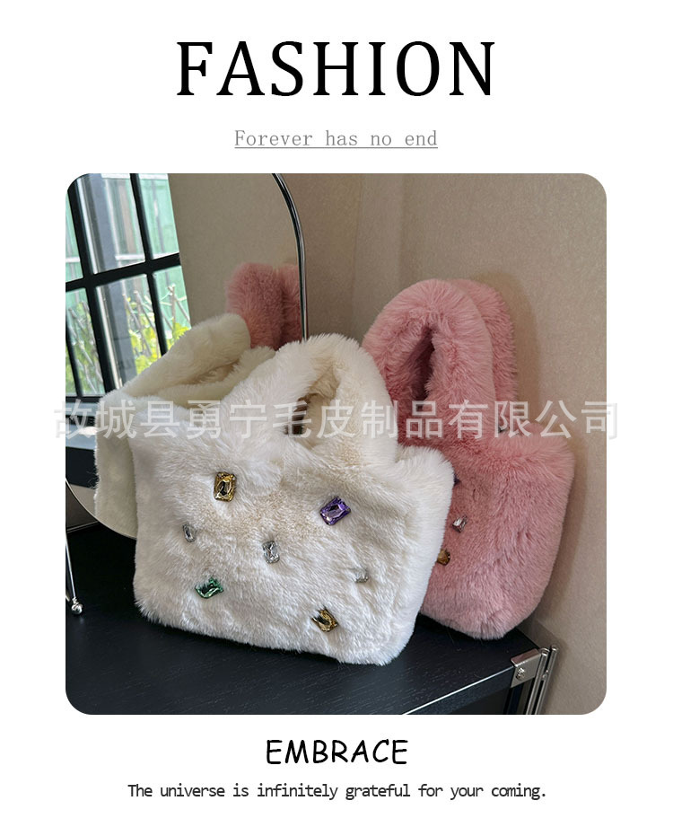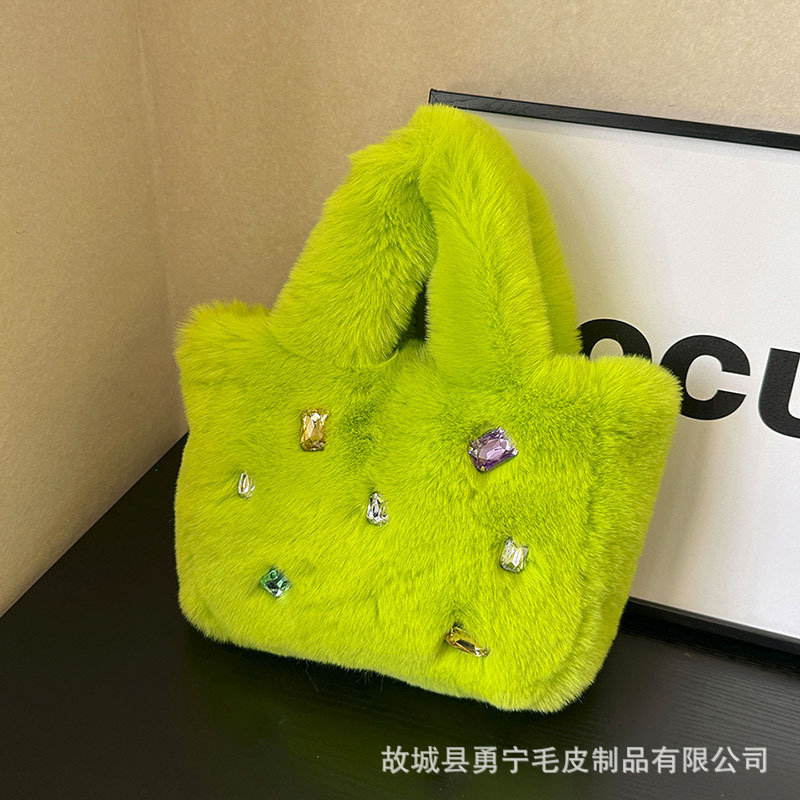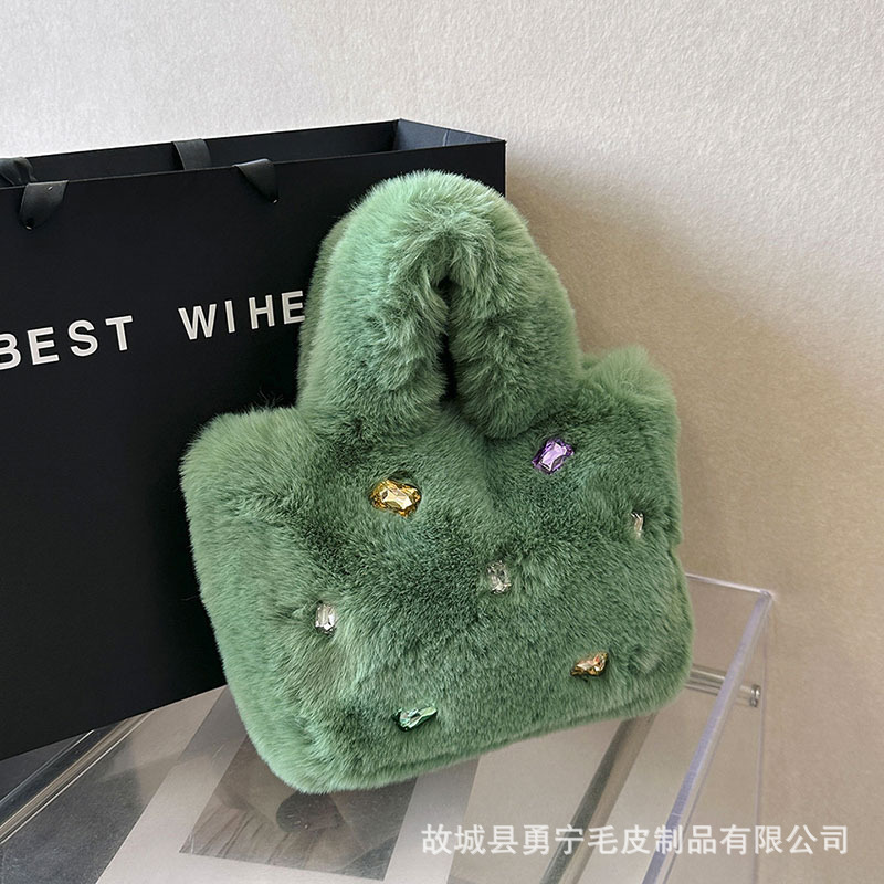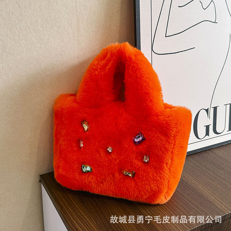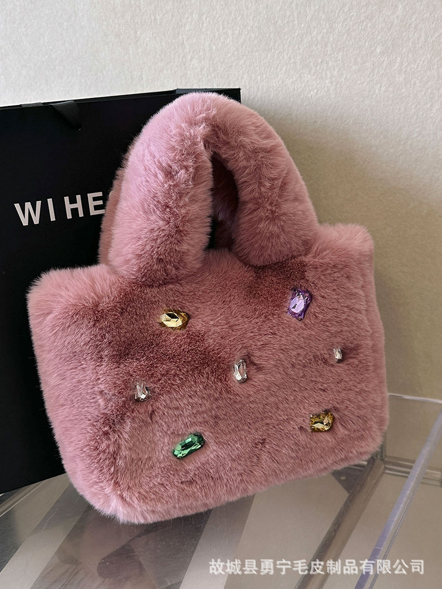 Cross-Border Trendyy Fashion Tote Furry Bag Women's Niche High-End Handbag 2025 New Diamond Plush Bag