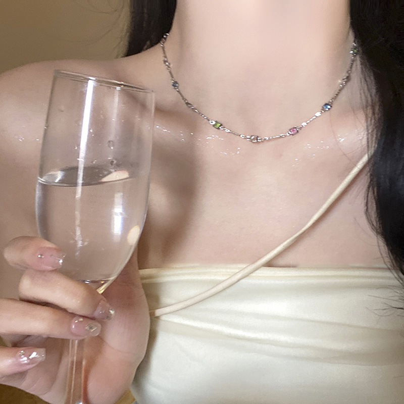 2024 New Color Square Crystal Thin Necklace Women's Spring and Summer Light Luxury Niche Distinctive Clavicle Chain Accessories