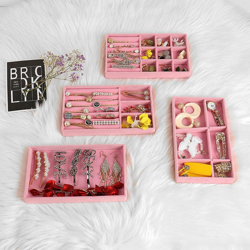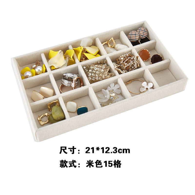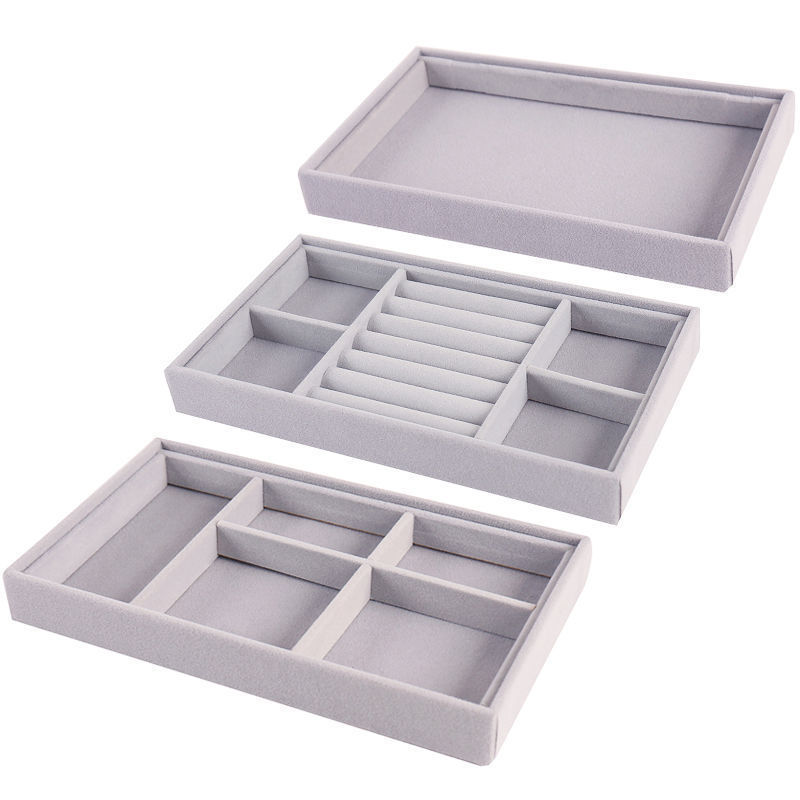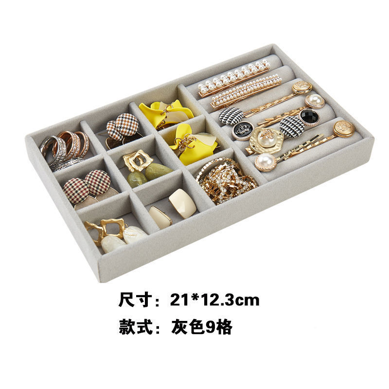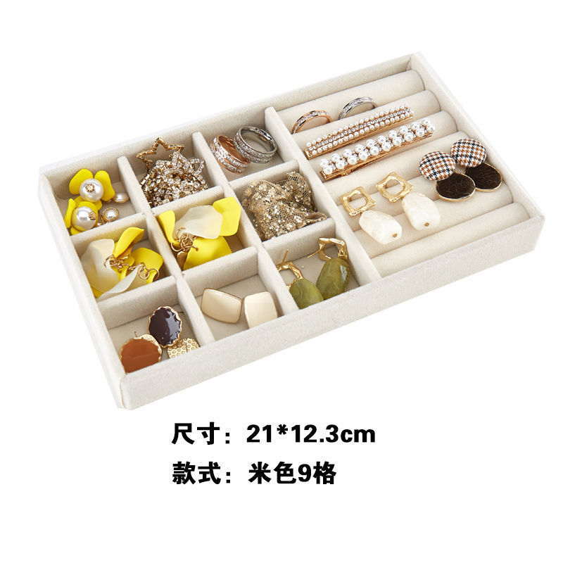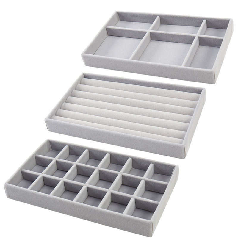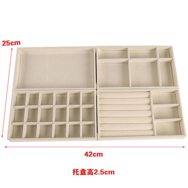 Jewelry Display Tray Drawer Jewelry Box Women's Velvet Ring Earrings Small Grids Princess Tray Partition Necklace European Style Rack