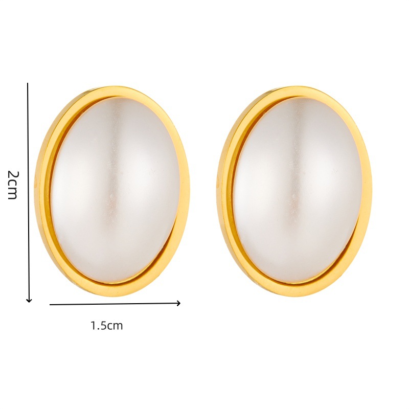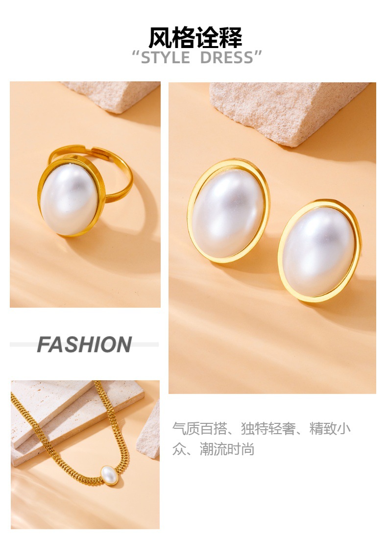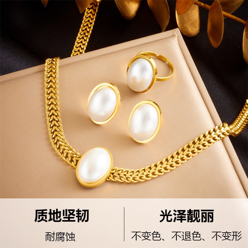 European and American Fashion Retro Simple Gold-plated Stainless Steel Oval Pearl Accessories Jewelry Earrings Ring Necklace suit