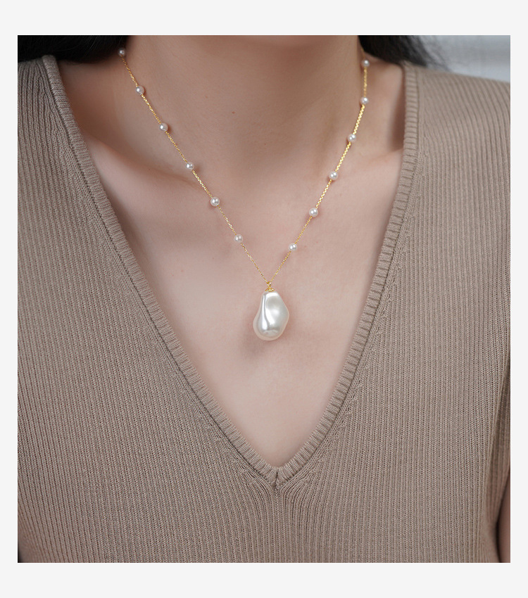 Niche design feeling big pearl baby's hair star necklace 925 sterling silver clavicle chain light luxury fashion sense jewelry women's 40688