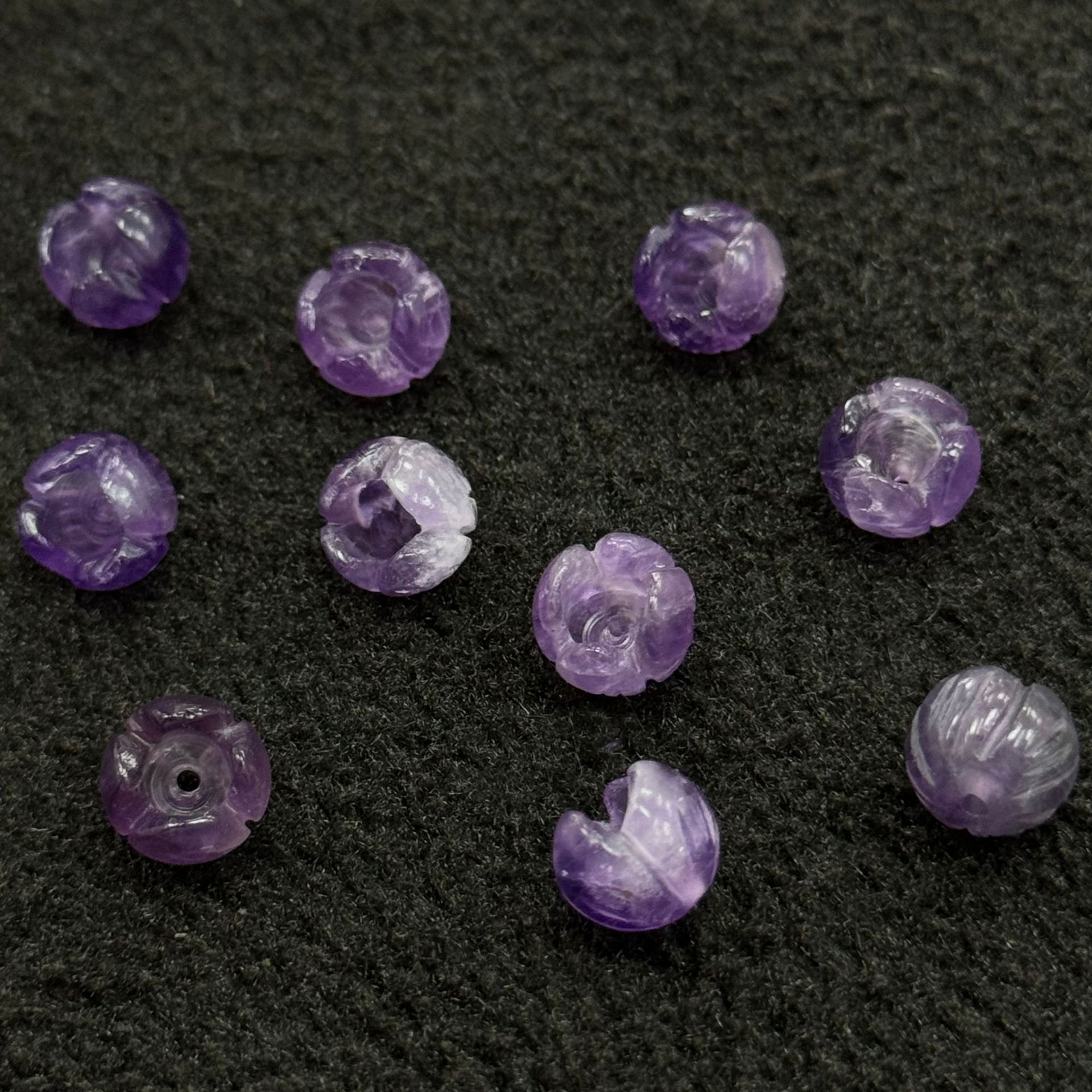 10*11 Natural Amethyst White Crystal Flower Bud Carving Antique Bowl Flower Pendant Necklace Handmade DIY Earrings