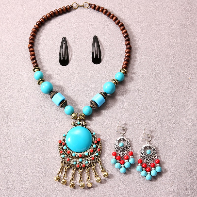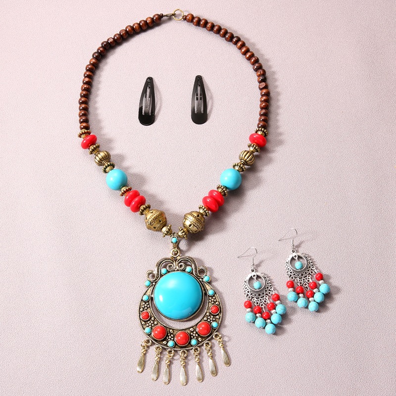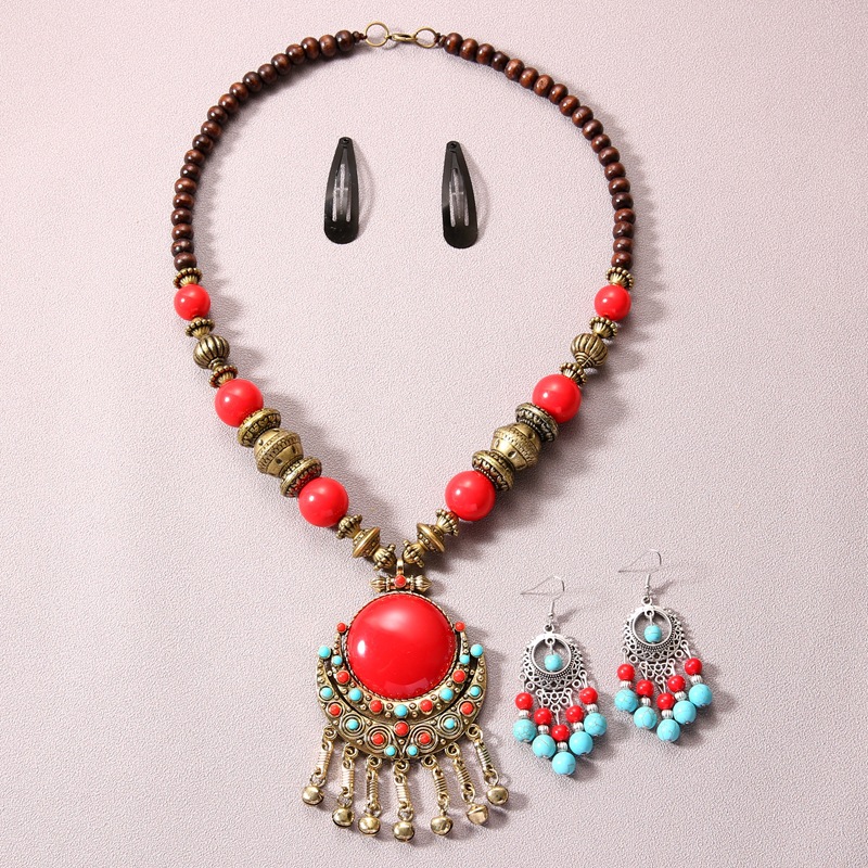 Color: Embrace the sun and moon-red (for both headwear and necklaces)