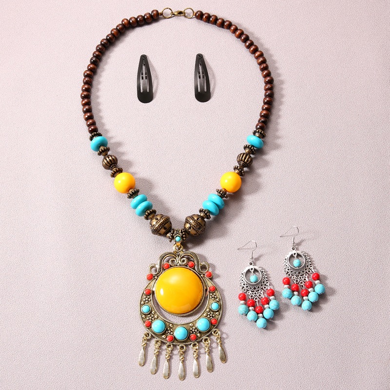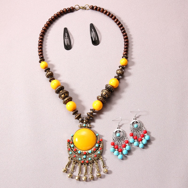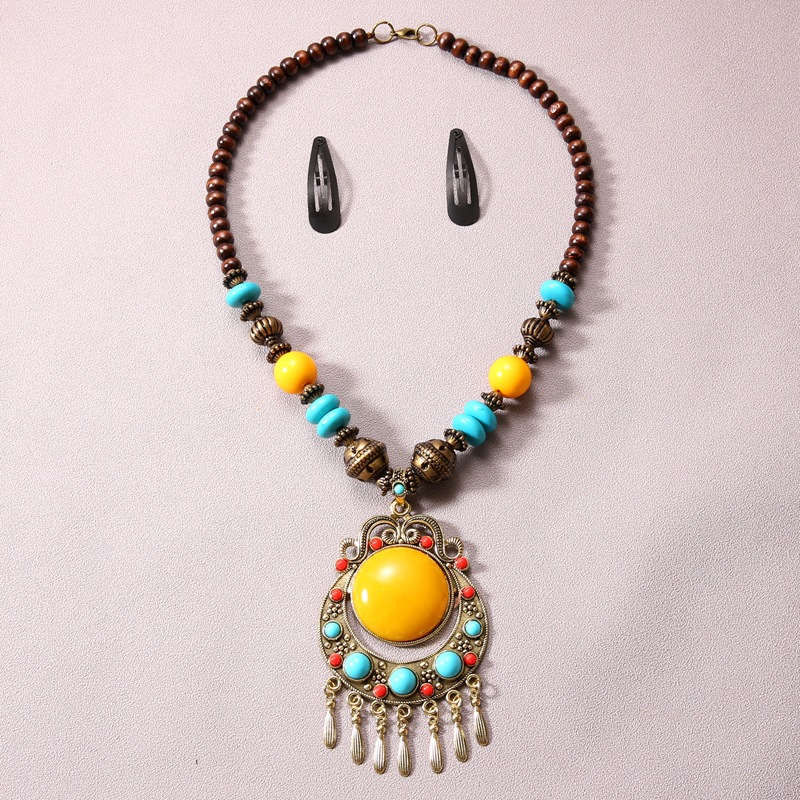 Color: Sun crescent suit-yellow (dual use of headwear and necklaces)